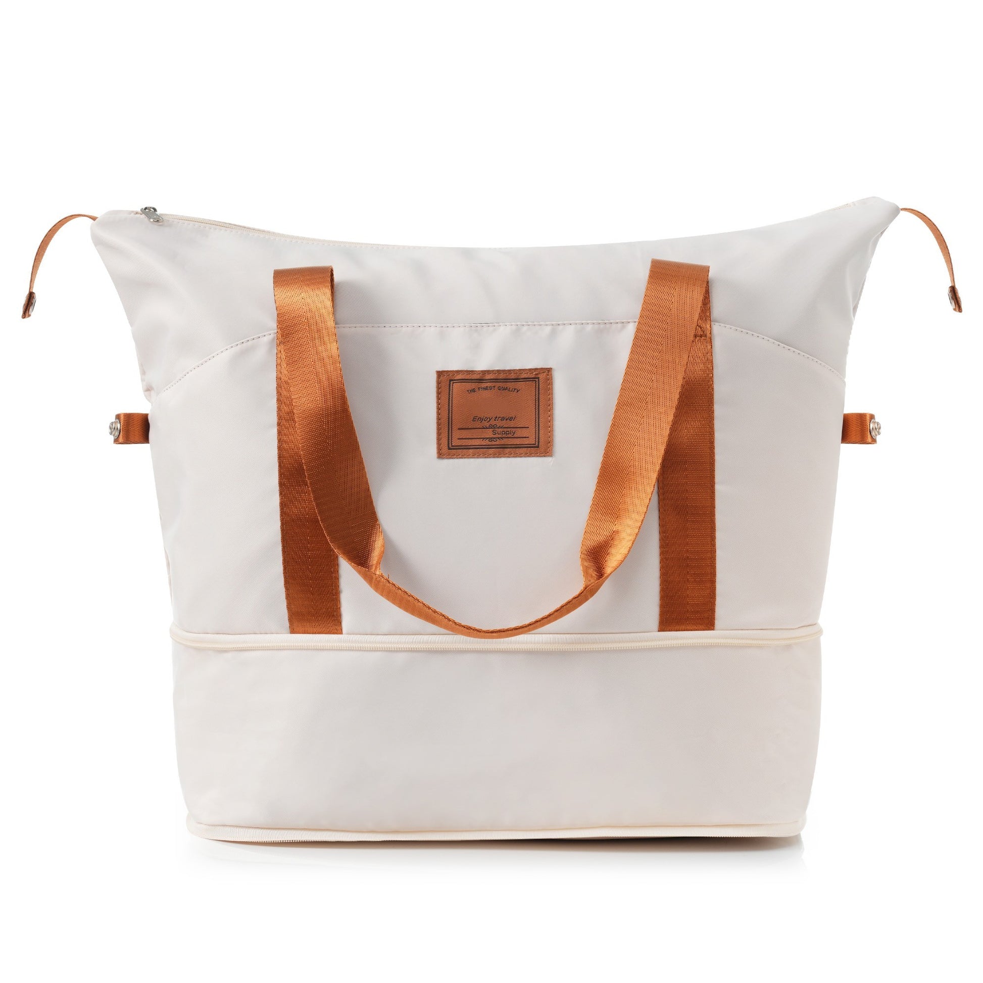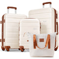Luggage Sets 4 Piece, Expandable Abs Durable Suitcase With Travel Bag, Carry On Luggage Suitcase Set With 360 Spinner Wheels, Ivory And Brown Ivory Abs