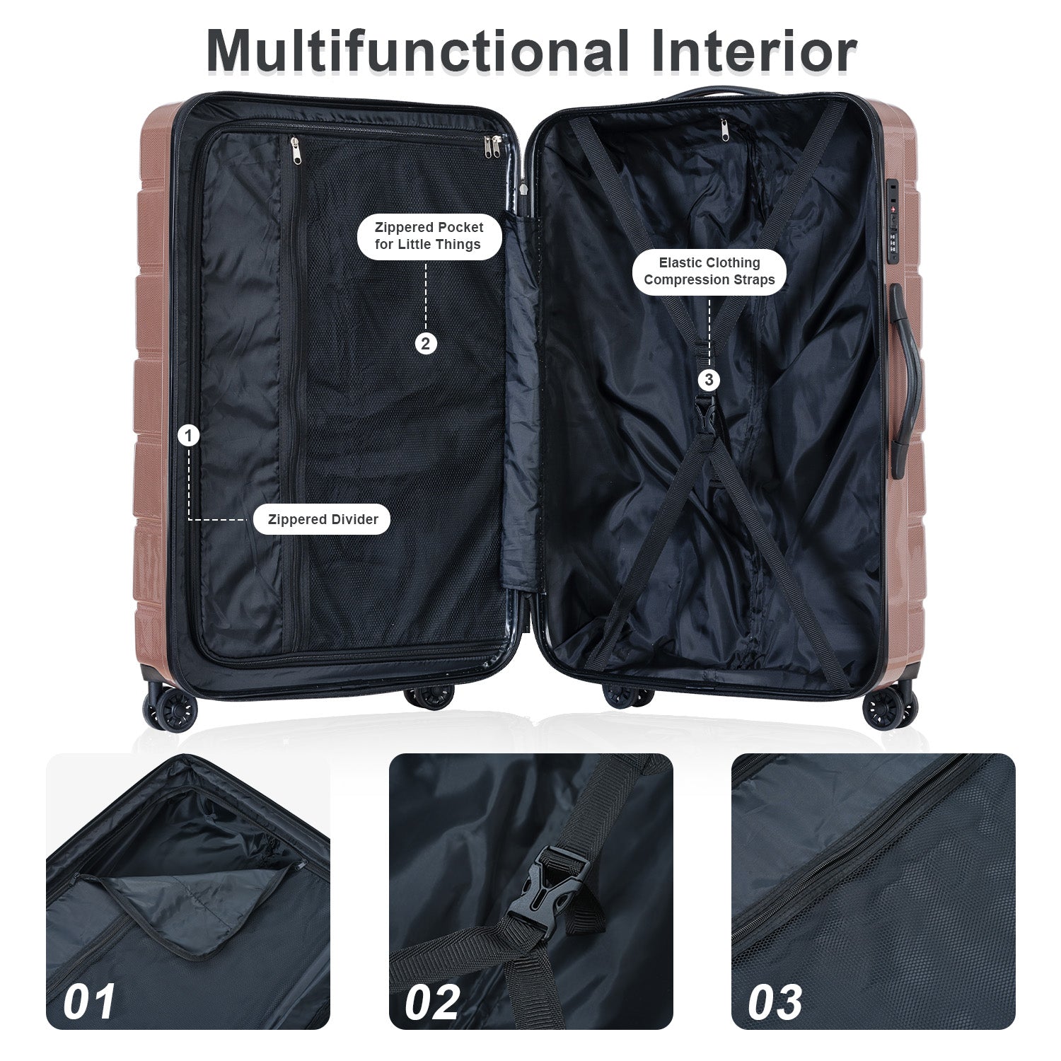 Luggage Sets Abs Pc Hardshell 3Pcs Clearance Luggage Hardside Lightweight Durable Suitcase Sets Spinner Wheels Suitcase With Tsa Lock 20 24 28 , Rosegold Rose Gold Abs Pc