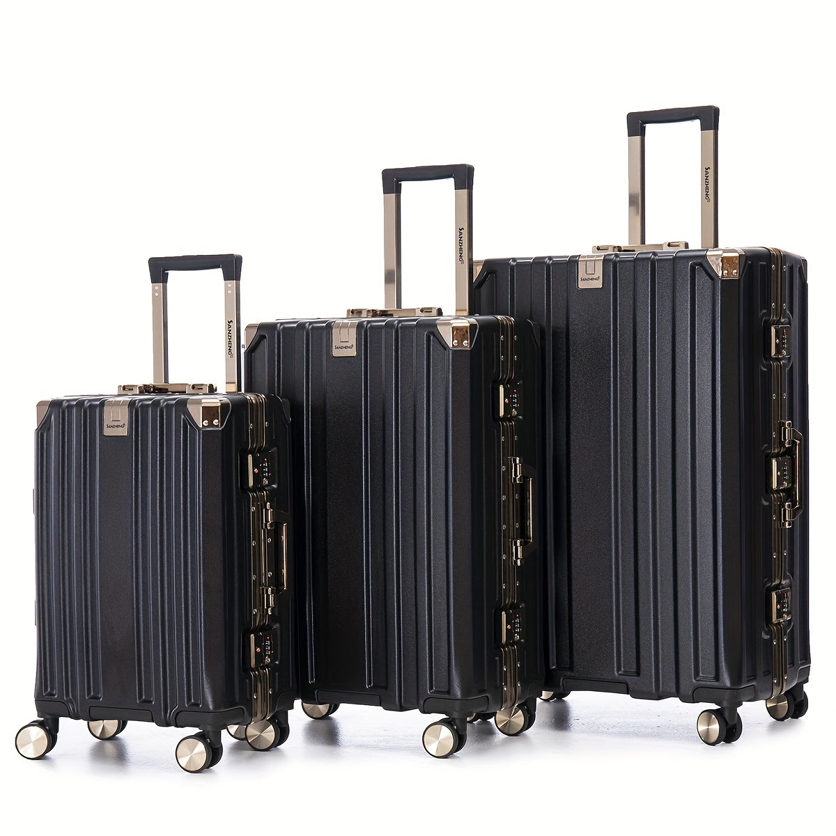 Luggage Sets Expandable Aluminum 20 24 28 Inch Three Model Set, Stylish Suitcase With Aluminum Frame Password Lock, Suitable For Travel Suitcases And Suitcases Black Contemporary Aluminum