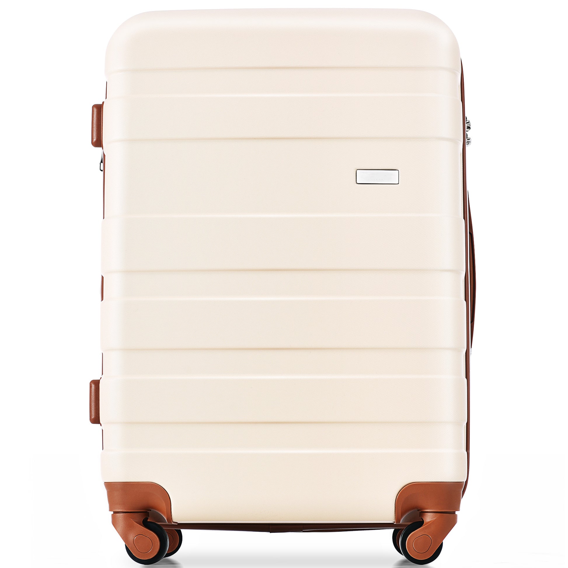 Luggage Sets Model Abs Hardshell 3Pcs Clearance Luggage Hardside Lightweight Durable Suitcase Sets Spinner Wheels Suitcase With Tsa Lock 20''24''28'' Ivory And Brown Ivory Abs