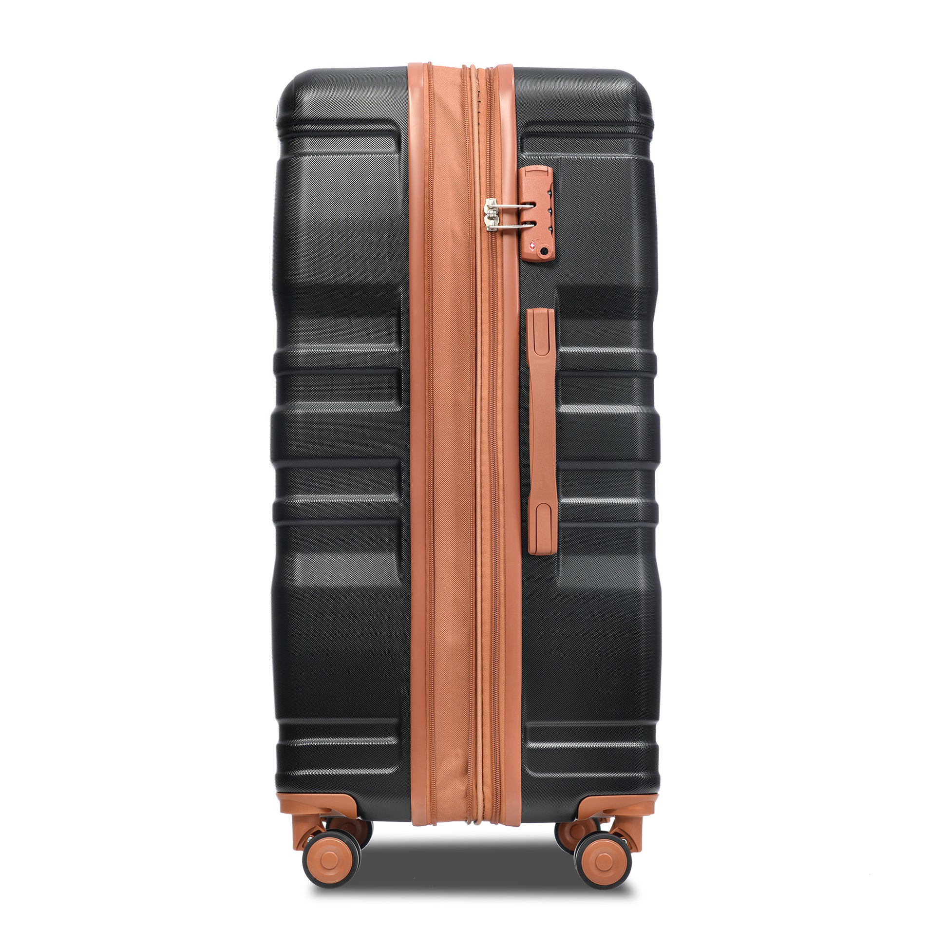 Luggage Sets Model Expandable Abs Hardshell 3Pcs Clearance Luggage Hardside Lightweight Durable Suitcase Sets Spinner Wheels Suitcase With Tsa Lock 20''24''28'' Black And Brown Black Brown Abs
