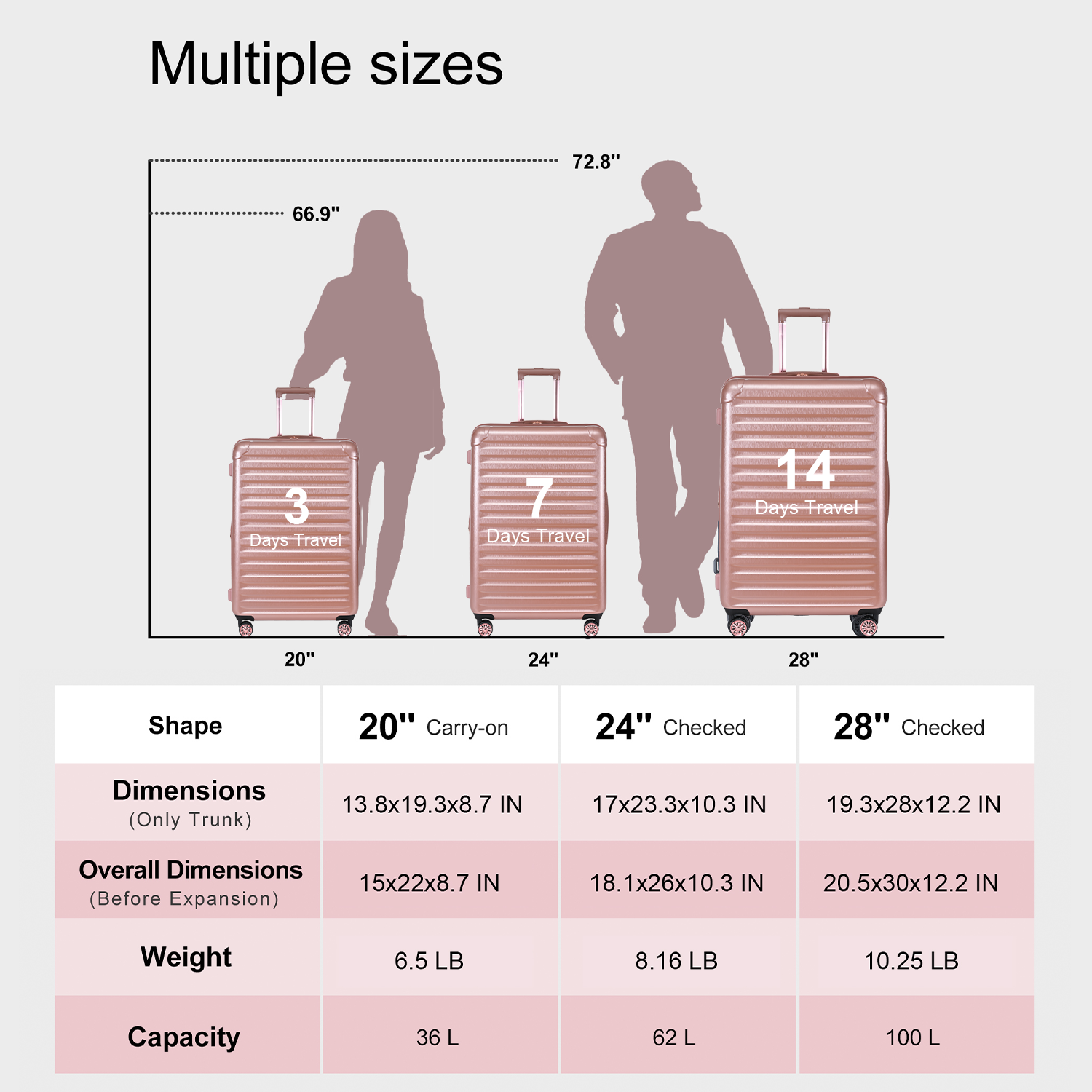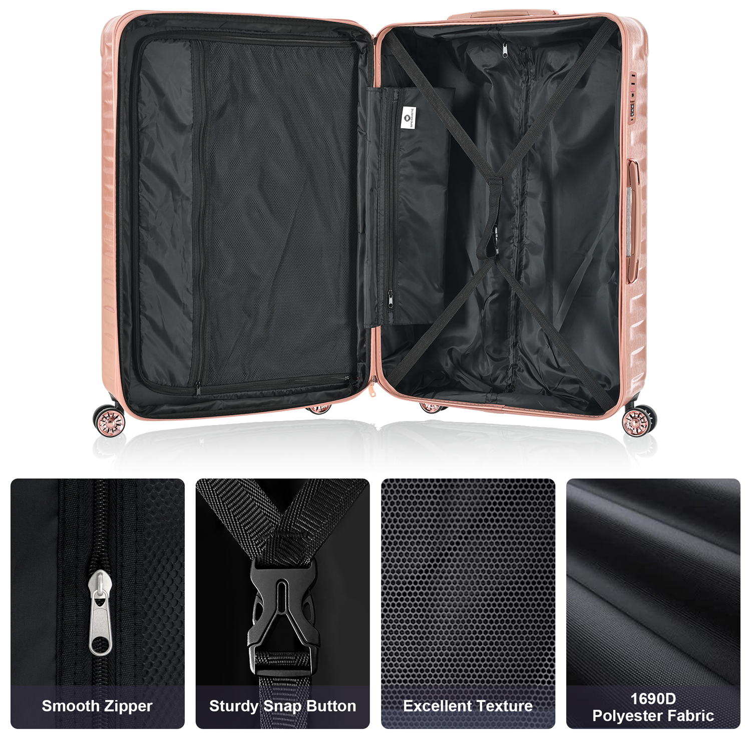 Luggage Sets Model Expandable Abs Pc 3 Piece Sets With Spinner Wheels Lightweight Tsa Lock 20 24 28 ,Rose Gold Rose Gold Abs Pc