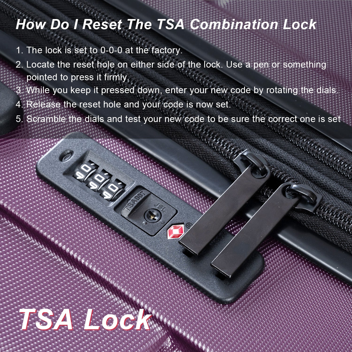 Luggage Sets Model Expandable Abs Pc 3 Piece Sets With Spinner Wheels Lightweight Tsa Lock 20 24 28 ,Deep Purple Purple Abs Pc