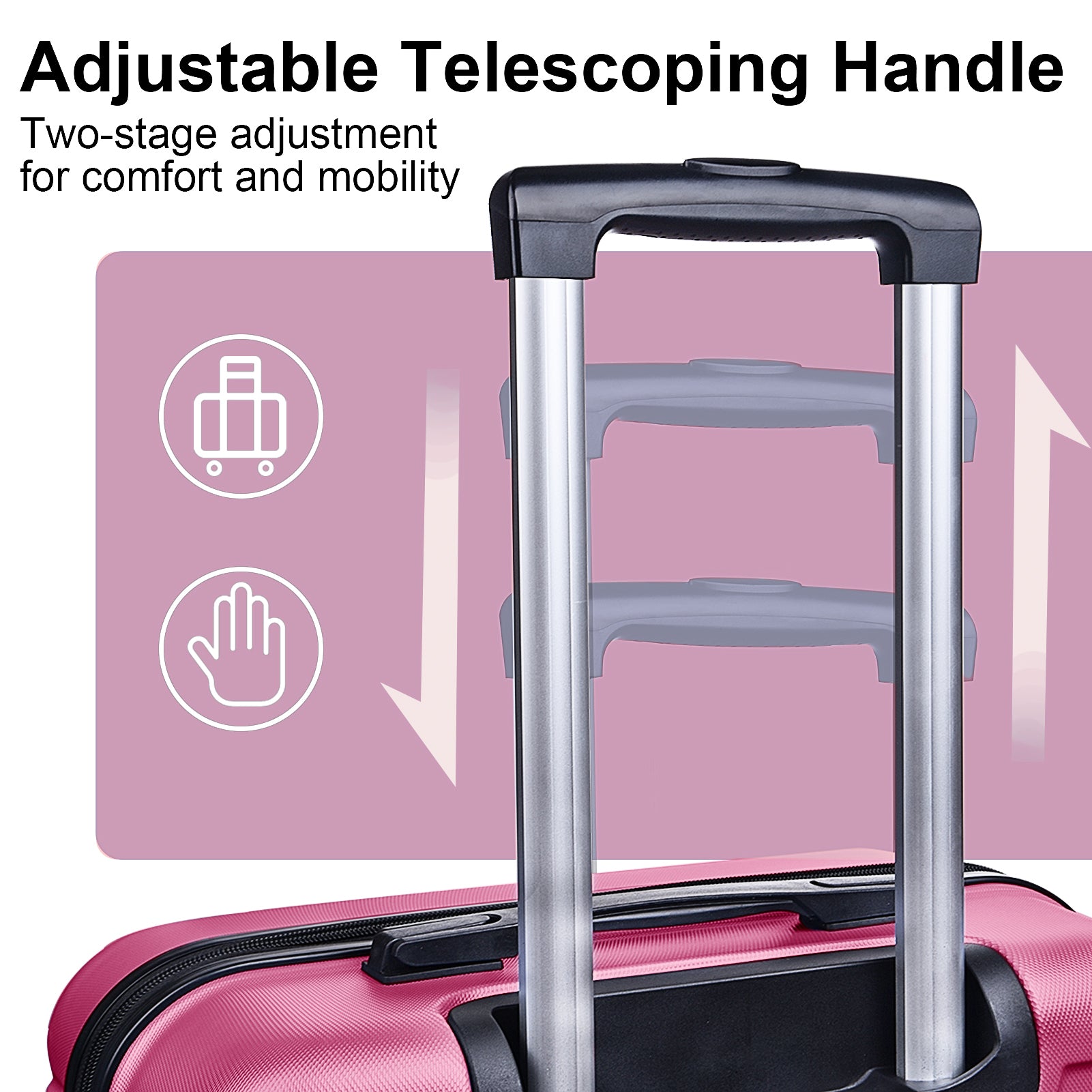 Luggage Suitcase 3 Piece Sets Hardside Carry On Luggage With Spinner Wheels 20" 24" 28" Rose Red Abs
