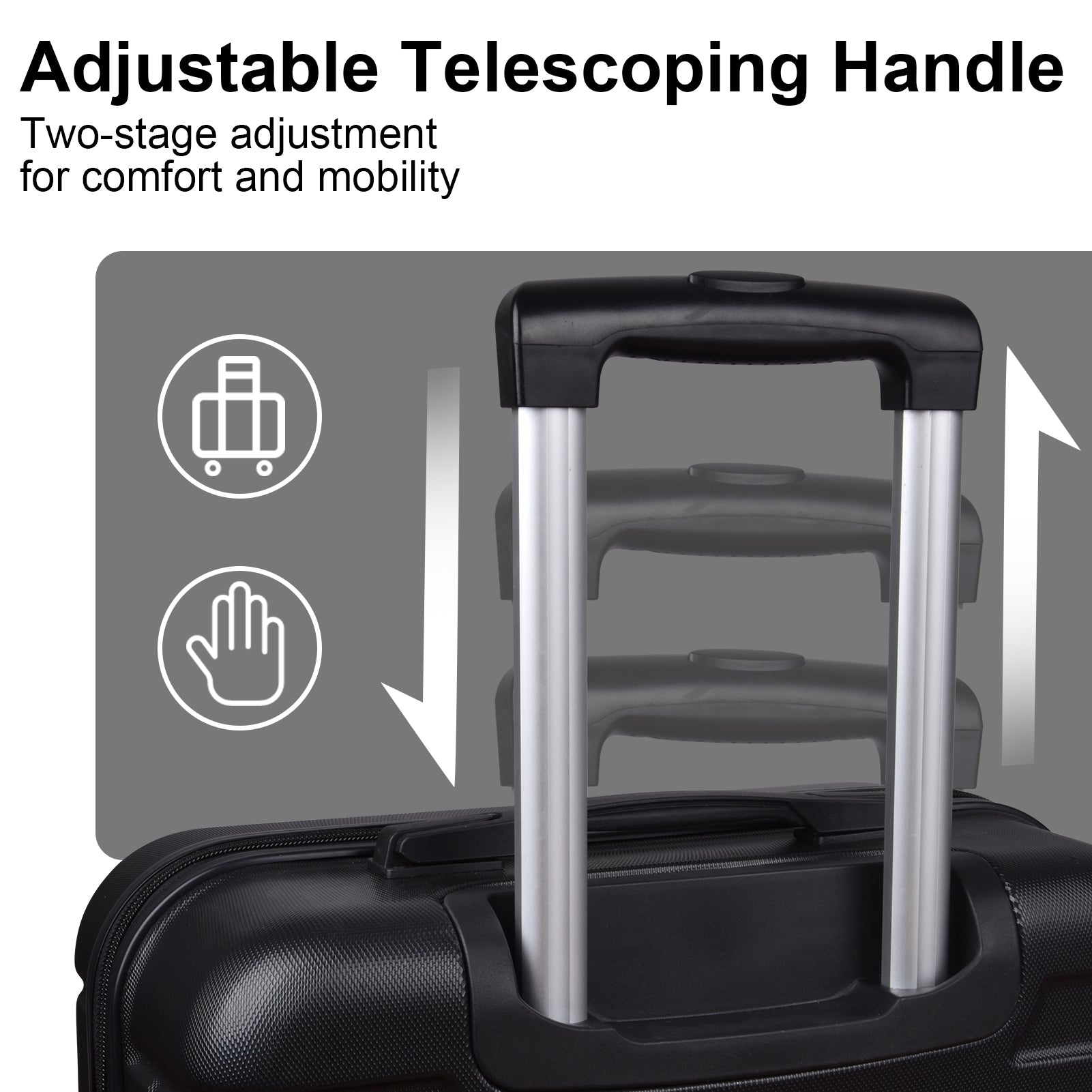 Luggage Suitcase 3 Piece Sets Hardside Carry On Luggage With Spinner Wheels 20" 24" 28" Black Abs