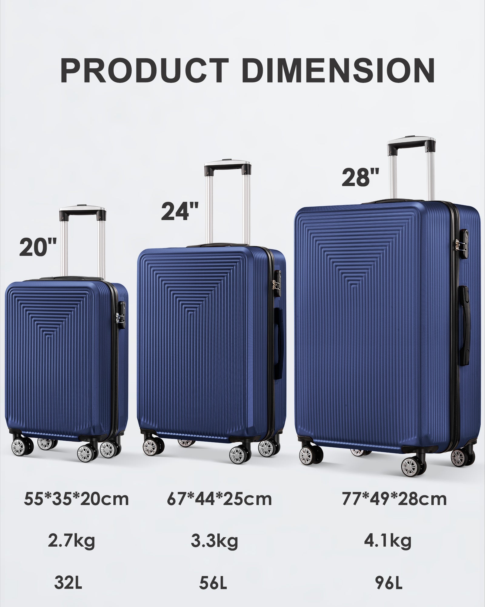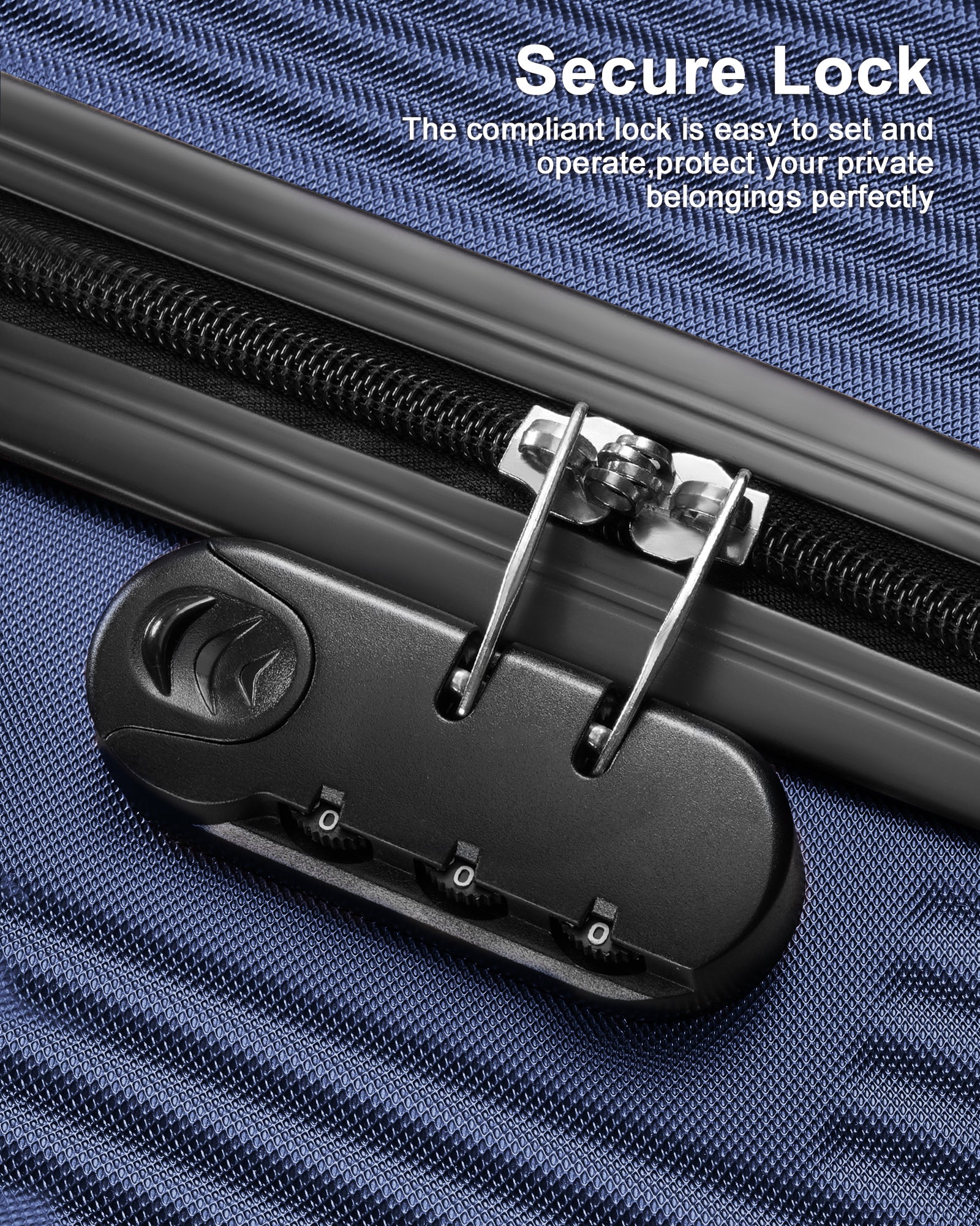 Luggage With Secure Lock Asb Durable Lightweight Suitcase Double Spinner Wheels 20'' Dark Blue Abs