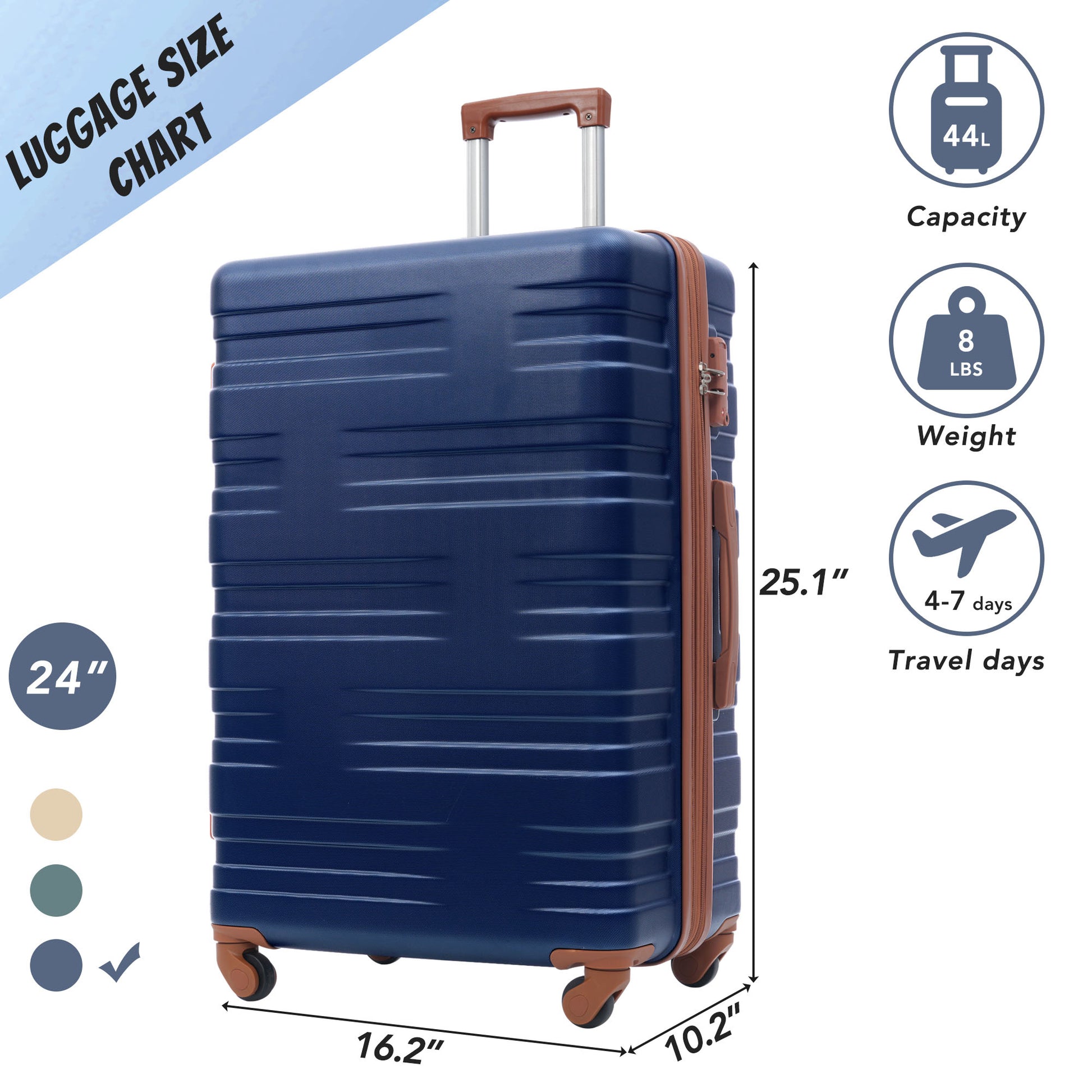 Luggage With Tsa Lock Spinner Wheels Hardside Expandable Luggage Travel Suitcase Check In Luggage Abs 24" Blue Brown Abs