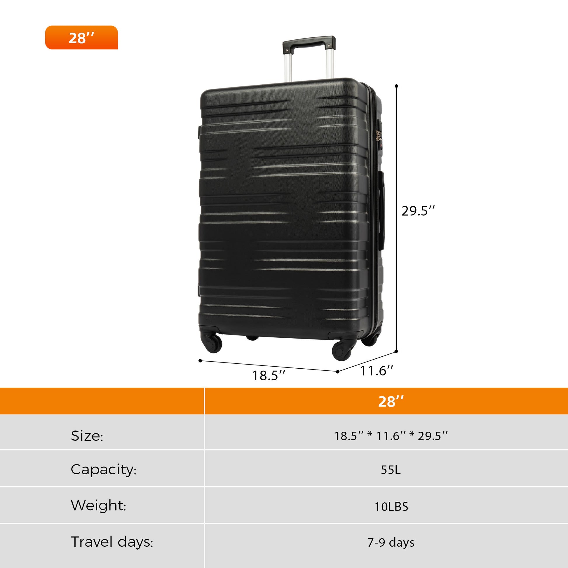 Luggage With Tsa Lock Spinner Wheels Hardside Expandable Luggage Travel Suitcase Check In Luggage Abs 28" Black Abs