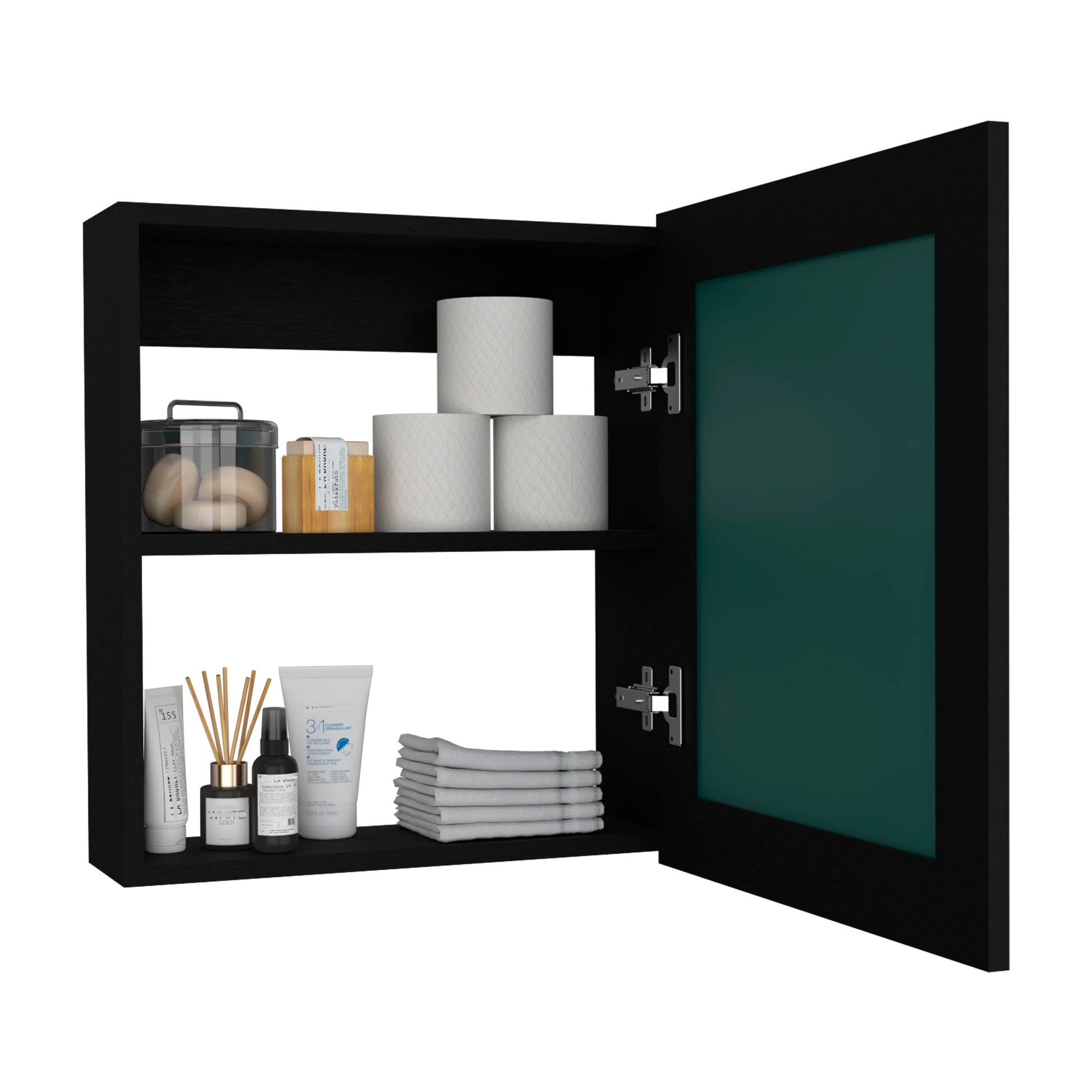 Luma Medicine Cabinet With Mirror Door 20.5" High Cabinet Organizer With Two Interior Shelves For Bathroom, Kitchen, Mudroom Black 1 2 Bathroom Wall Mounted Modern Particle Board