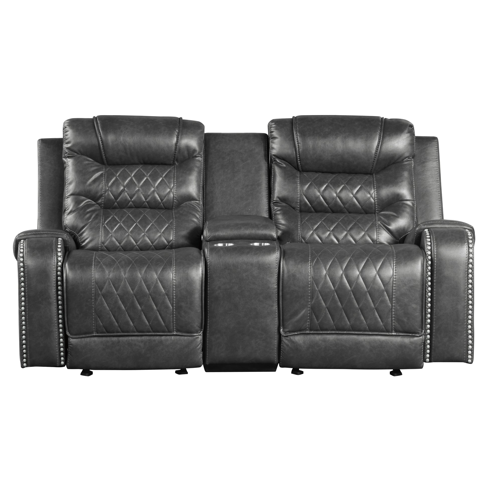 Luxurious Living Room Furniture 1Pc Gray Double Glider Reclining Loveseat With Center Console, Receptacles Usb Ports,Faux Leather Upholstery Diamond Pattern Stitching Gray Faux Leather Wood Primary Living Space Luxury,Modern Solid Wood