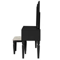 Luxurious Majestic Classic Black Color Vanity Set W Stool 3 Storage Drawers 1Pc Bedroom Furniture Set Tri Fold Mirror Black Bedroom Traditional Poplar Rubber Wood