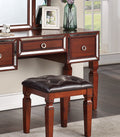 Luxurious Majestic Classic Cherry Color Vanity Set W Stool 3 Storage Drawers 1Pc Bedroom Furniture Set Tri Fold Mirror Cherry Bedroom Traditional Poplar Rubber Wood