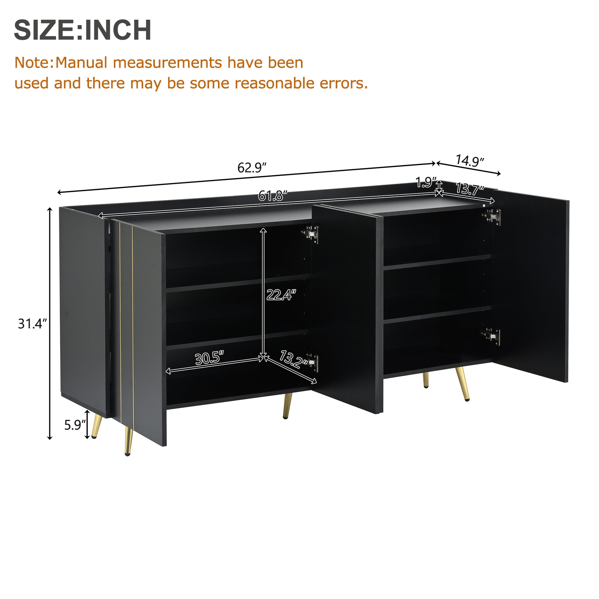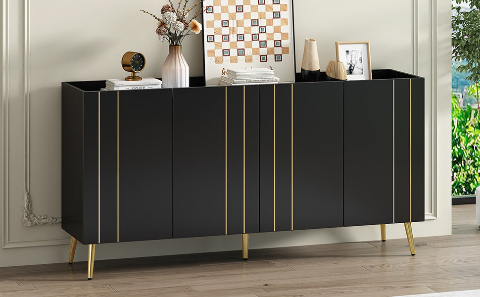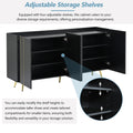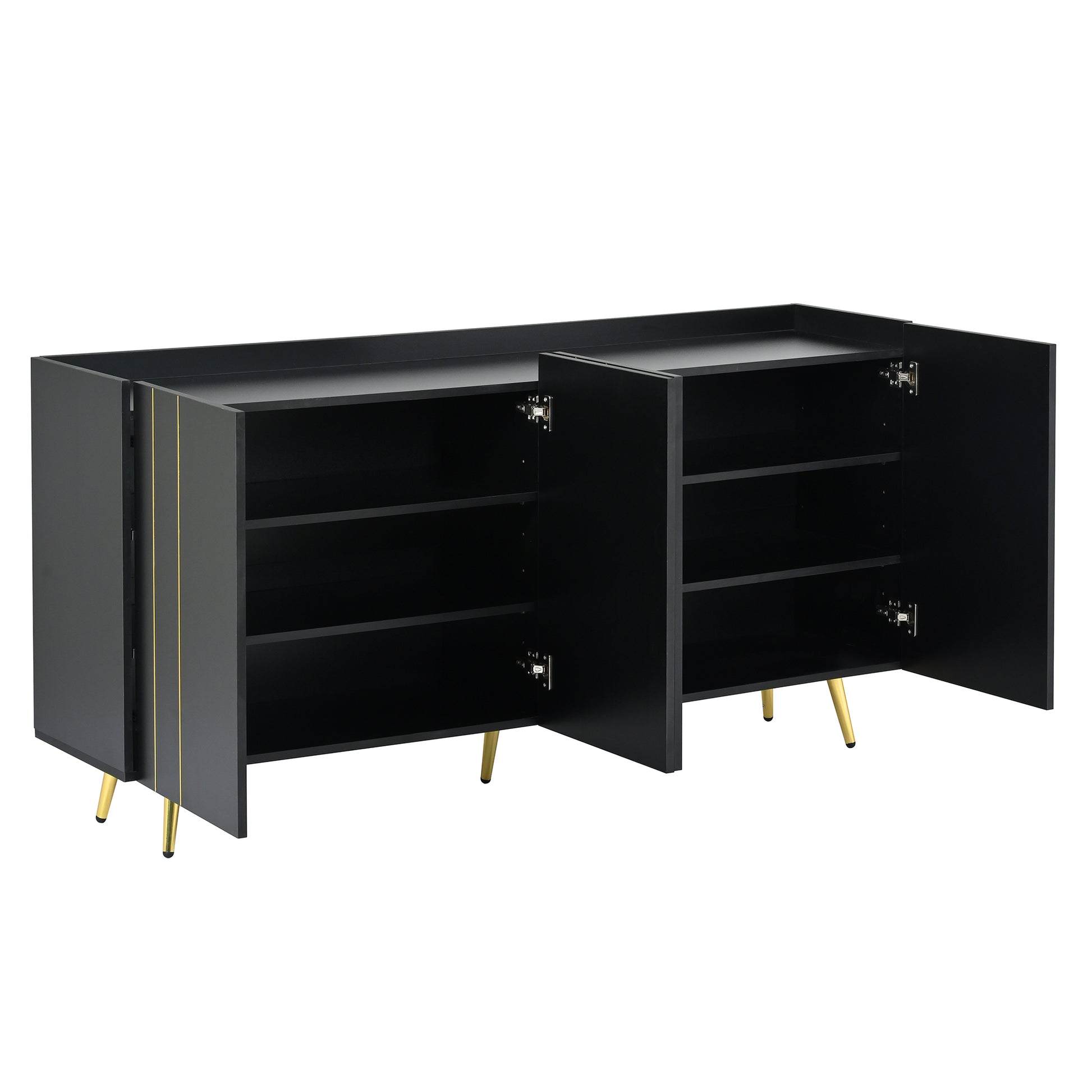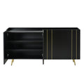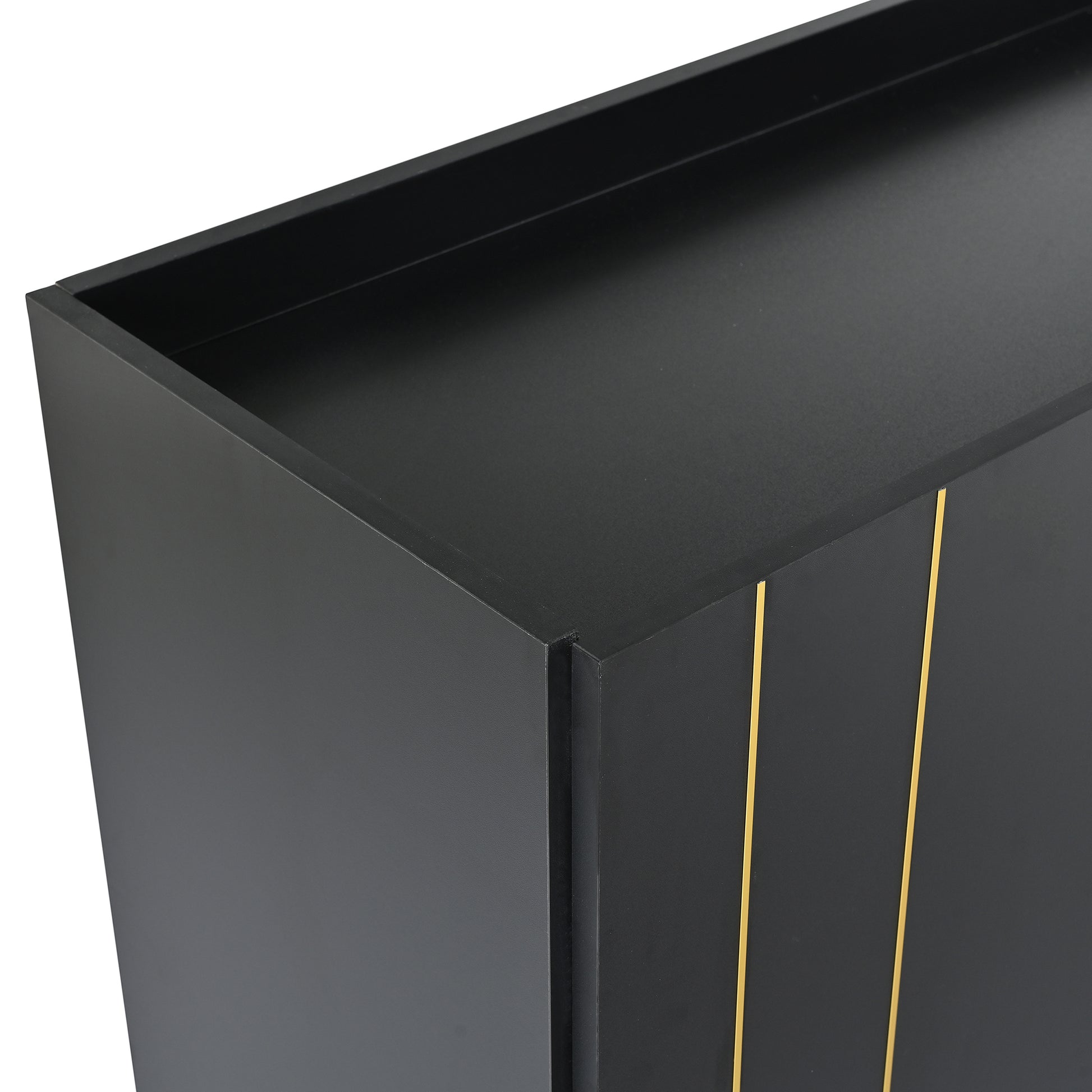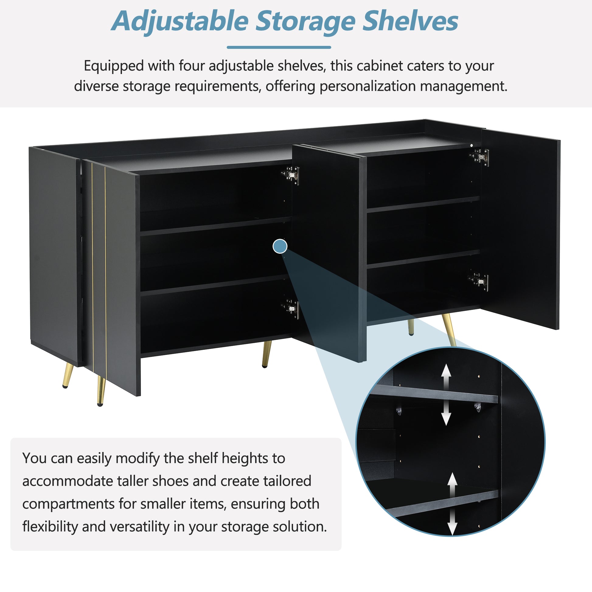 Luxurious Shoe Cabinet With 5 Metal Legs, Modern Tv Stand With 4 Adjustable Shelves For Tvs Up To 70", Minimalist Sideboard Cabinet With Gold Lines Doors For Living Room,62.9"X 31.4",Black Black