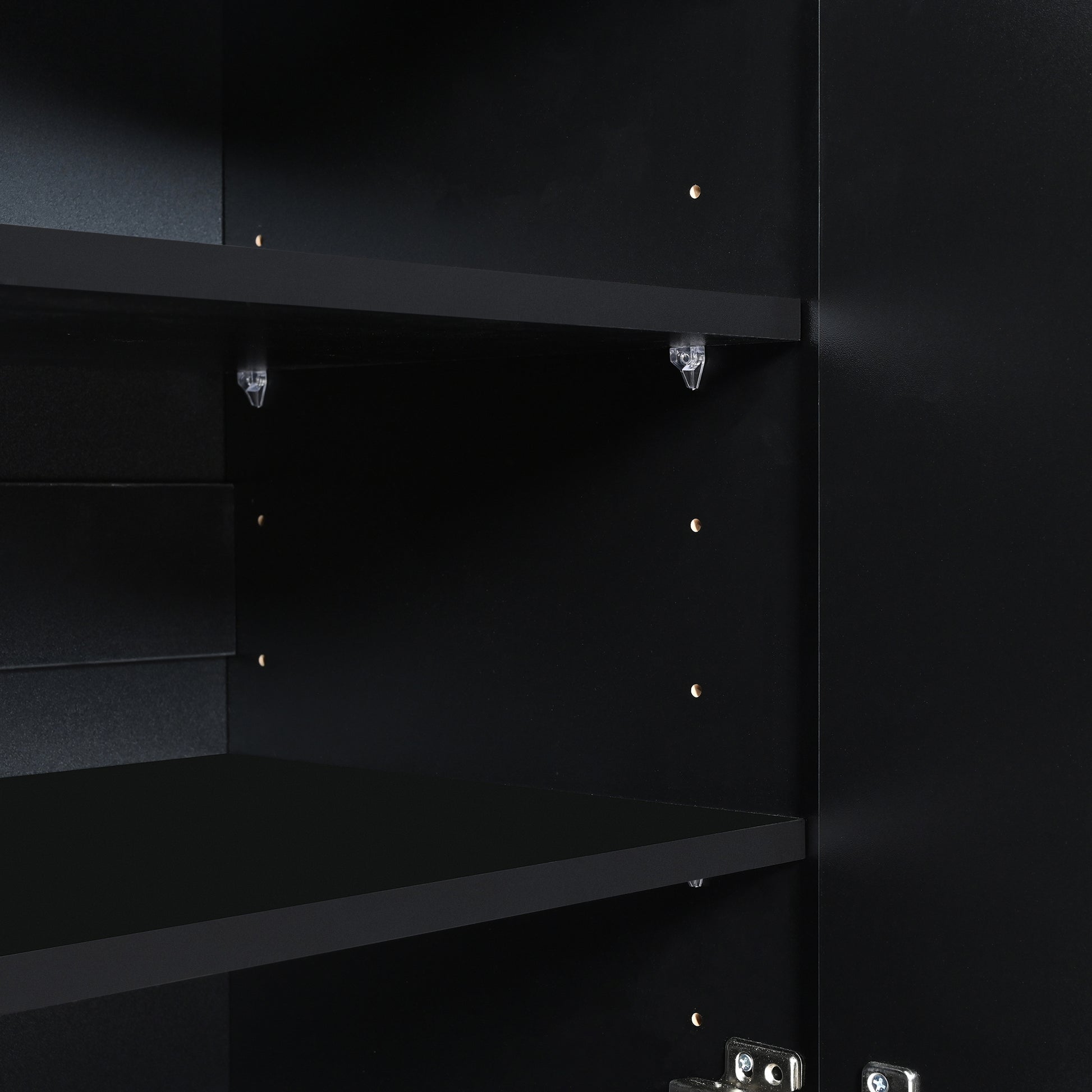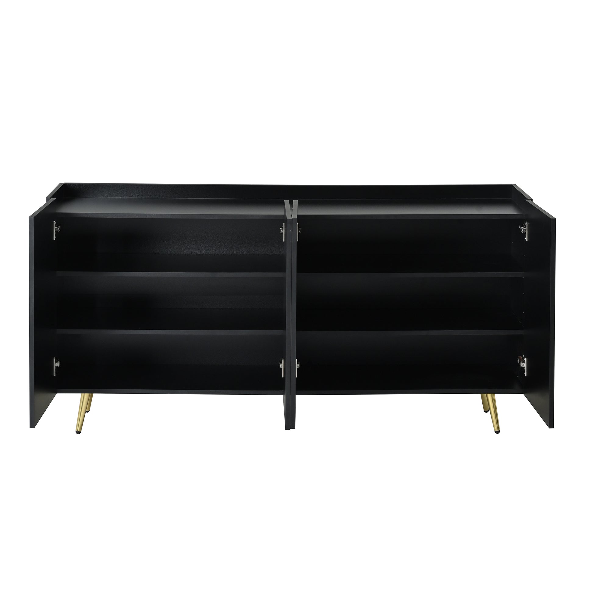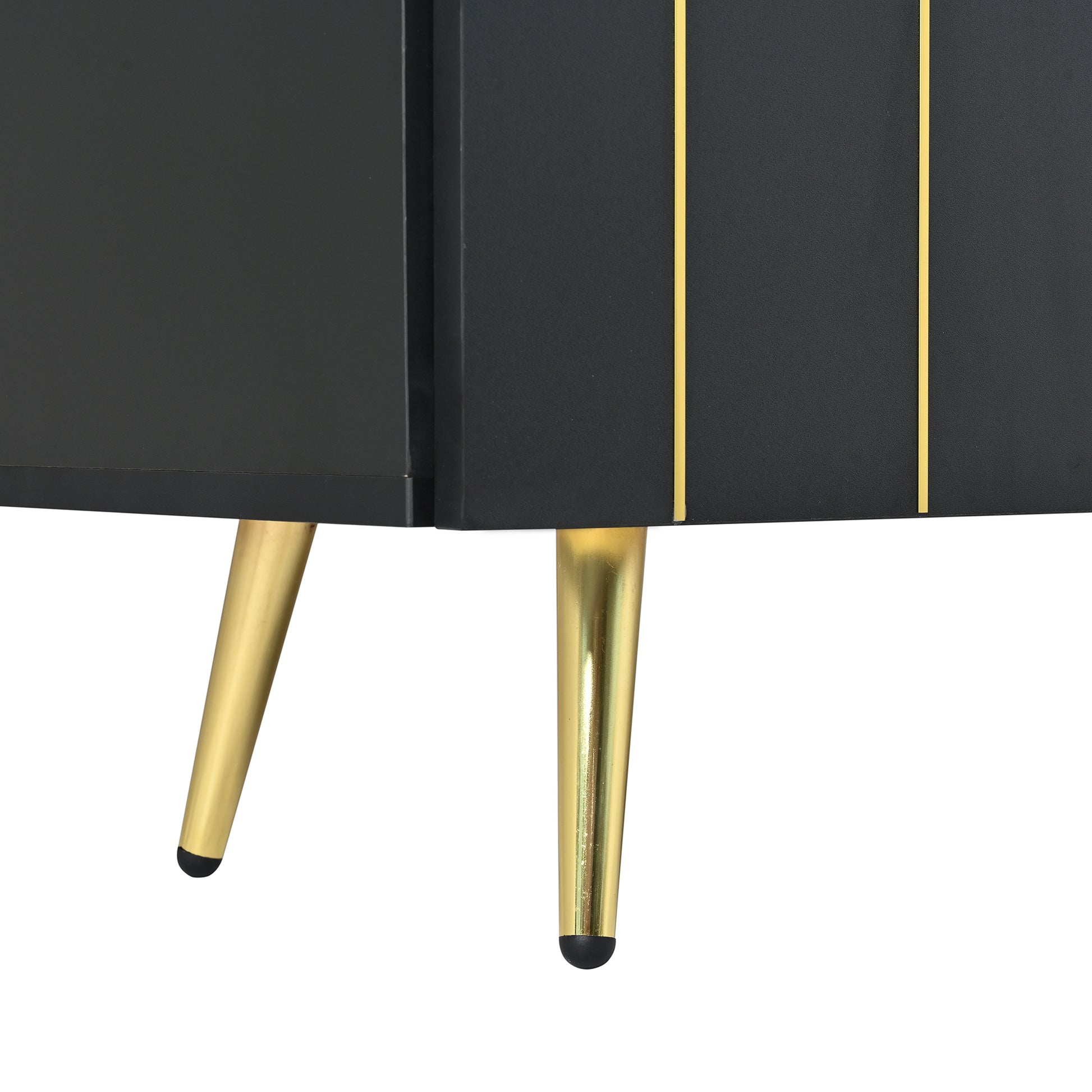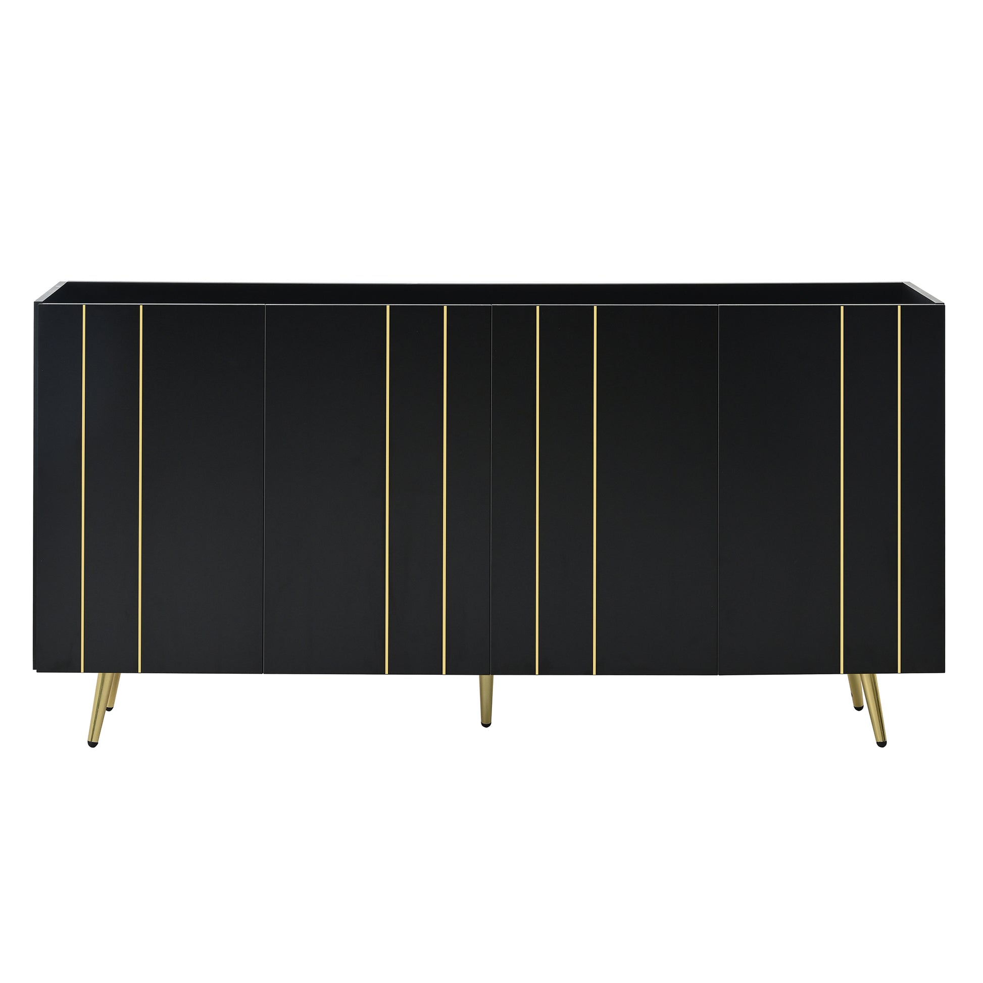 Luxurious Shoe Cabinet With 5 Metal Legs, Modern Tv Stand With 4 Adjustable Shelves For Tvs Up To 70", Minimalist Sideboard Cabinet With Gold Lines Doors For Living Room,62.9"X 31.4",Black Black