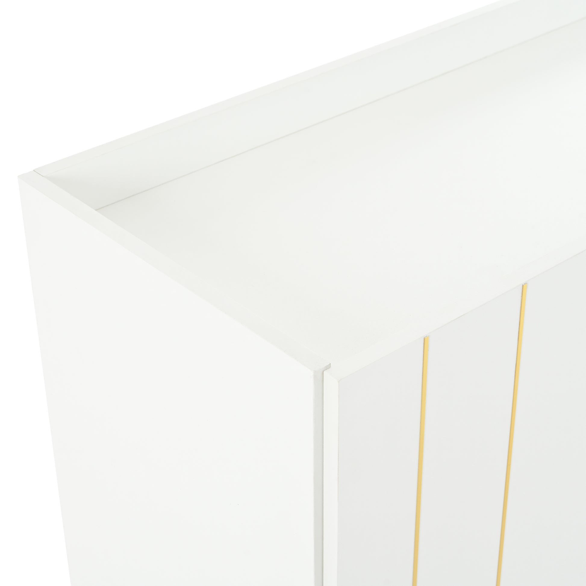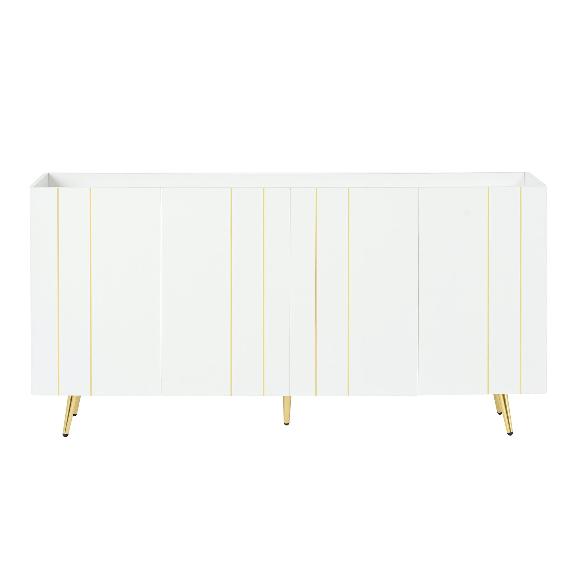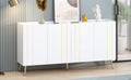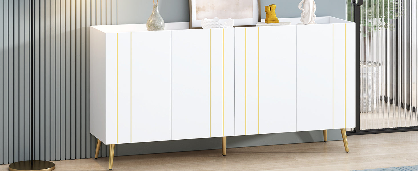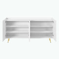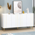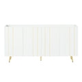 Luxurious Shoe Cabinet With 5 Metal Legs, Modern Tv Stand With 4 Adjustable Shelves For Tvs Up To 70", Minimalist Sideboard Cabinet With Gold Lines Doors For Living Room,62.9"X 31.4",White White