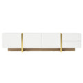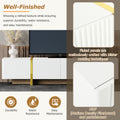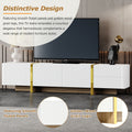 Luxury Fluted Tv Stand For Tvs Up To 80'', Modern Entertainment Center With Storage Cabinets & Drawers, Smooth Media Console With Golden Wood Grain Legs For Living Room, White White Primary Living Space 80 89 Inches Particle Board Mdf