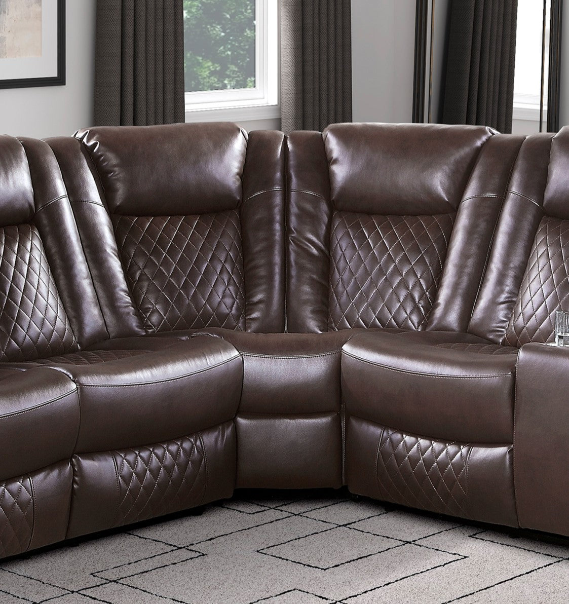 Luxury Living Room 3 Piece Power Reclining Sectional With Drop Down Cup Holders, Reading Lights, Console, Storage Arms With Cup Holders, Plush Seating, Premium Faux Leather Upholstery Dark Brown Faux Leather Wood Primary Living Space Luxury,Modern