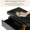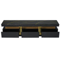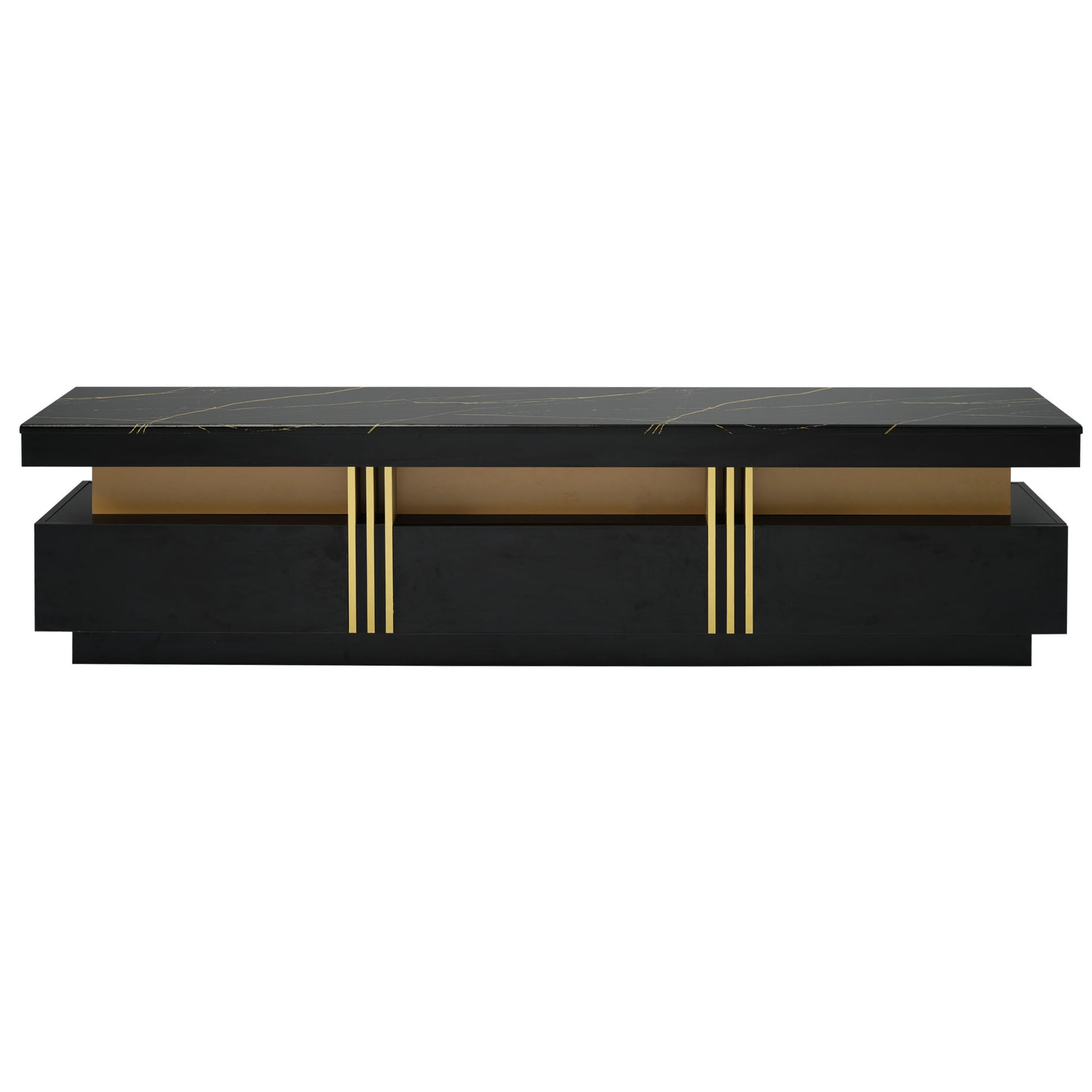 Luxury Tv Stand With High Gloss Faux Marble Top For Tvs Up To 78'', Rectangle Media Console With Golden Panel Design, Practical Entertainment Center With 3 Drawers For Living Room, Black Black Gold 70 79 Inches 70 79 Inches Mdf