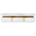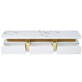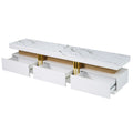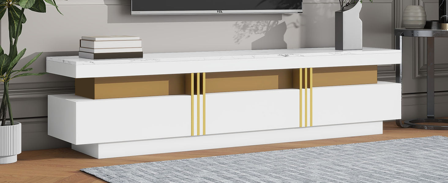 Luxury Tv Stand With High Gloss Faux Marble Top For Tvs Up To 78'', Rectangle Media Console With Golden Panel Design, Practical Entertainment Center With 3 Drawers For Living Room, White White Gold 70 79 Inches 70 79 Inches Mdf