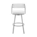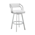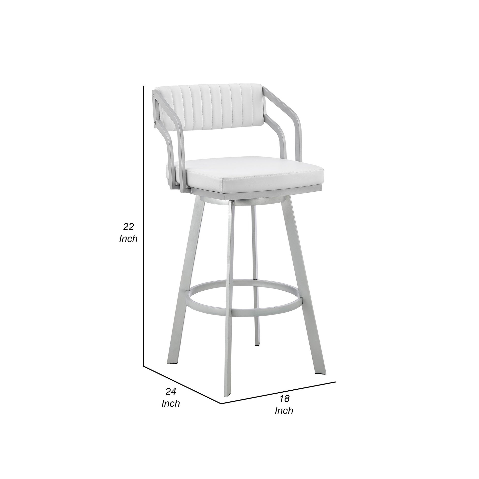 Lyla 26 Inch Counter Height Stool, Swivel, Faux Leather, White, Silver White Metal