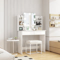 Makeup Vanity Desk With Led Lighted Mirror ,Dressing Table Set With 2 Large Drawers 10 Led Light ,White Color White Primary Living Space Modern Particle Board