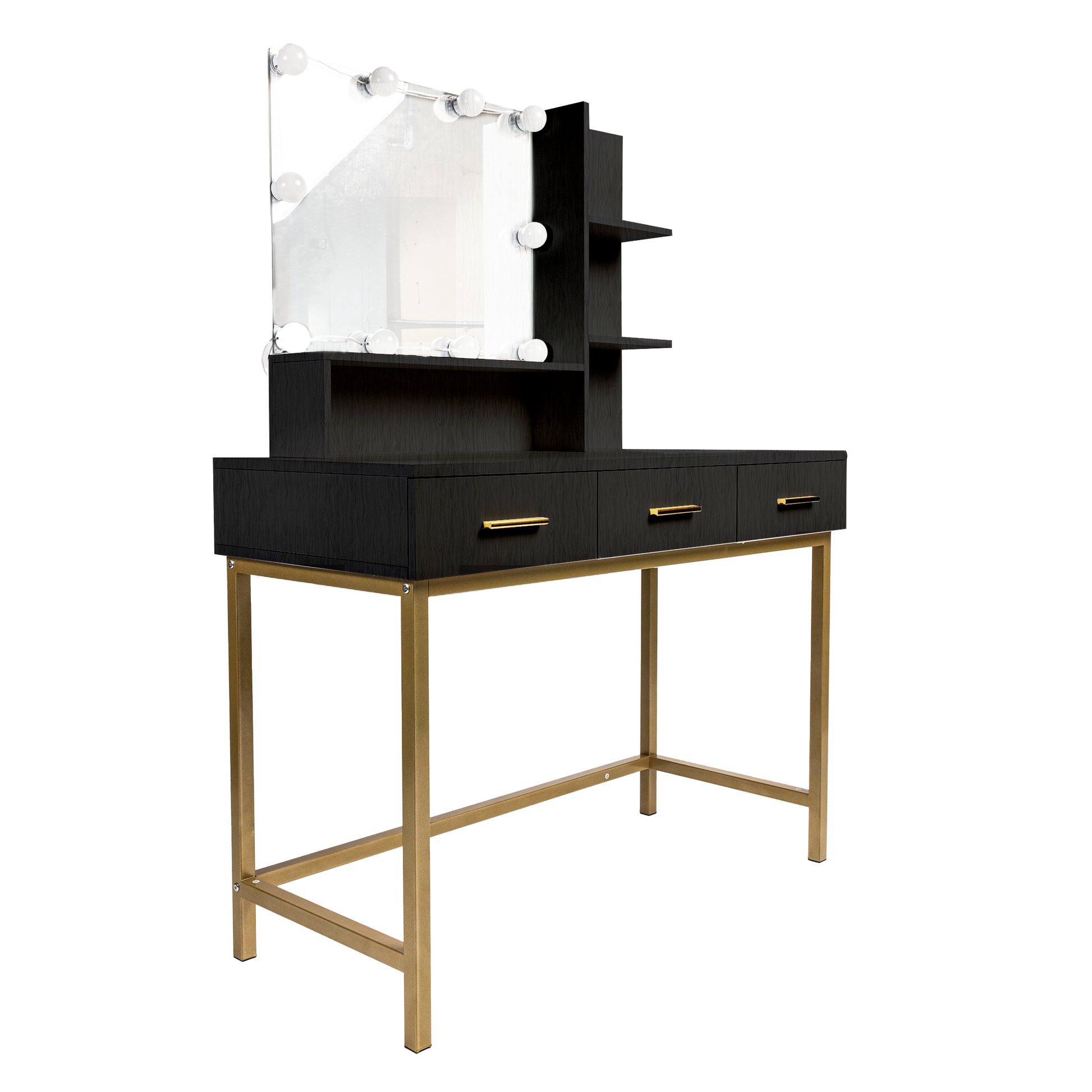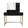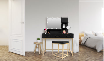 Makeup Vanity Table, Adjustable Led Lit Mirror, Upholstered Stool In Black Black 3 Drawers Glam Black Engineered Wood