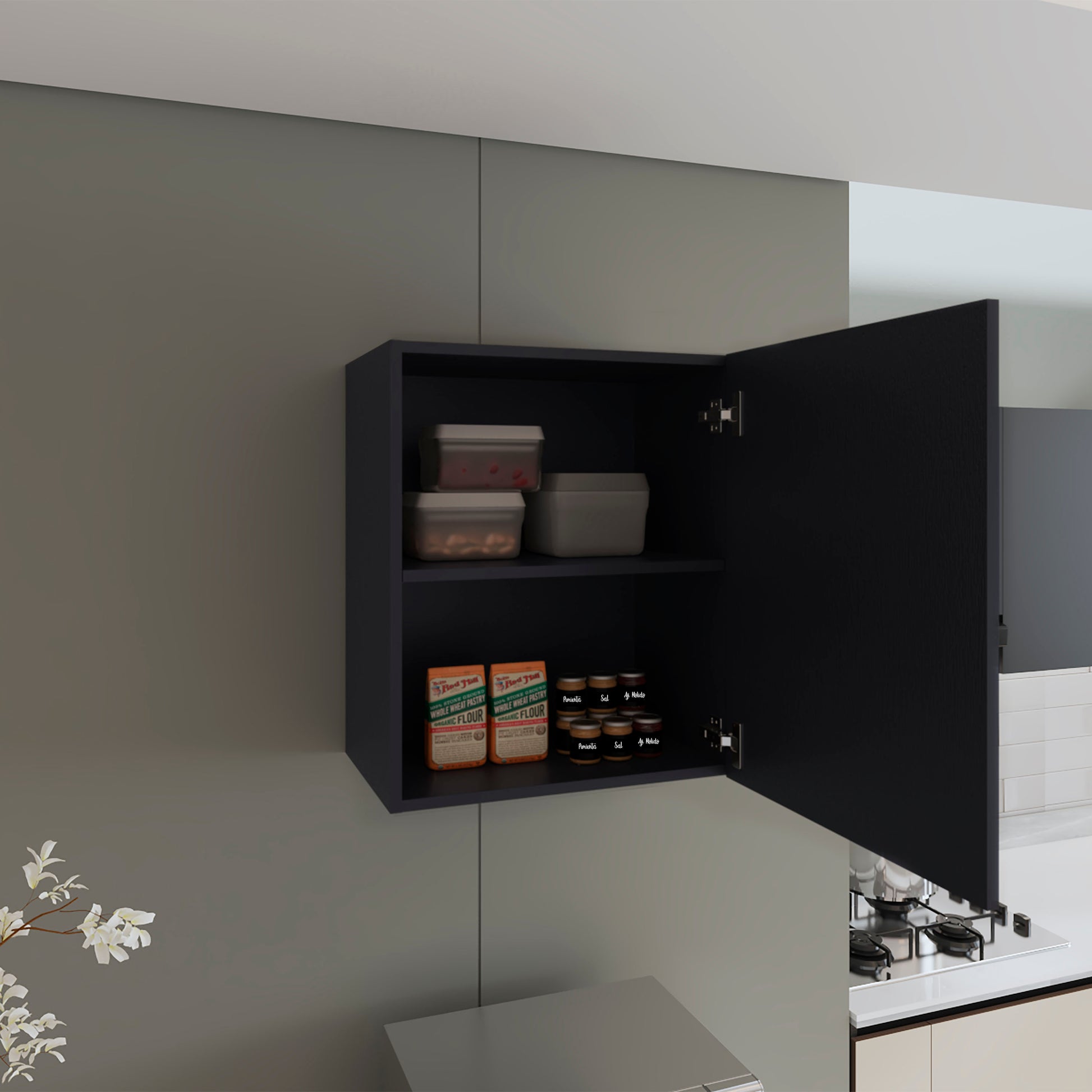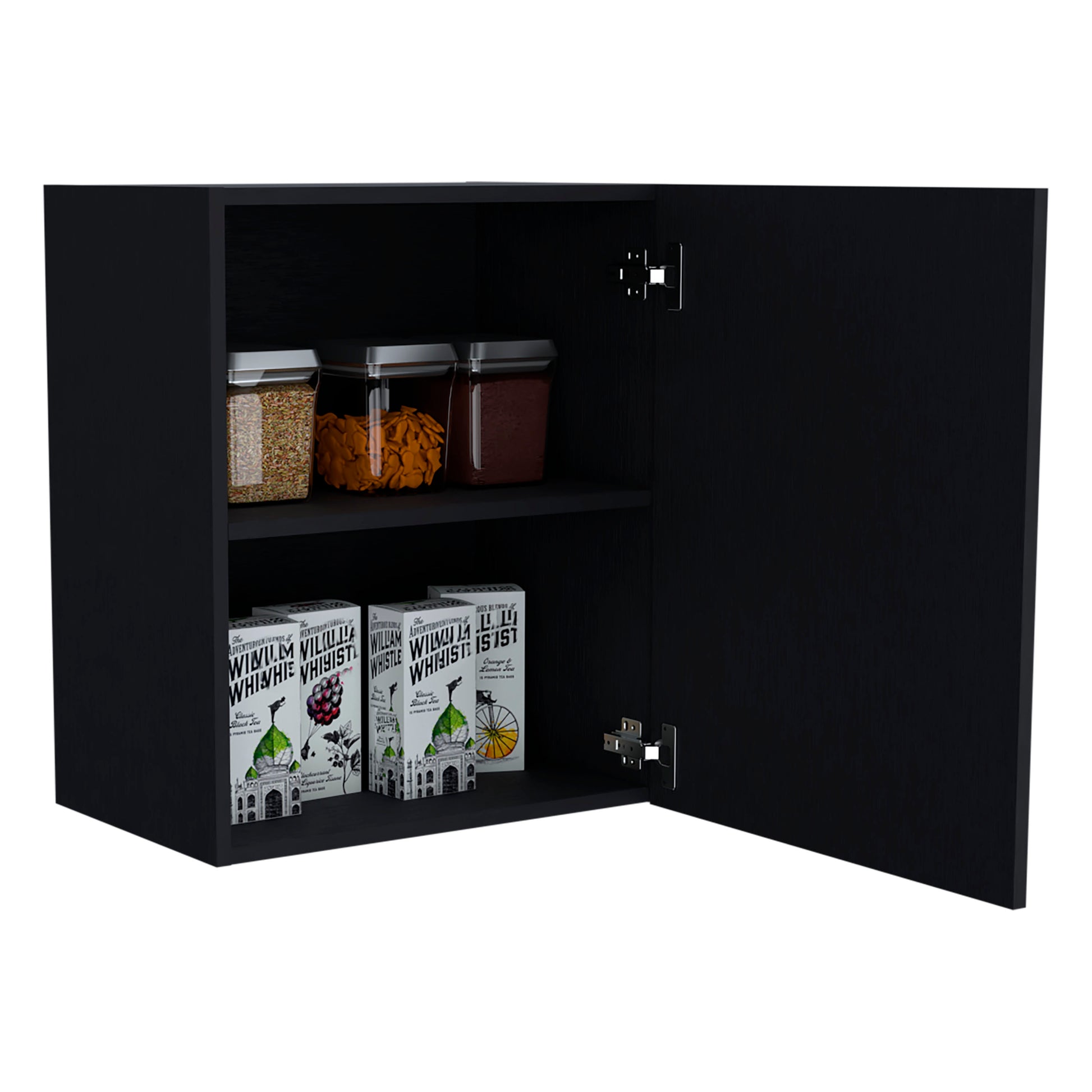 Manchester 20" Wide One Door And Two Shelves Wall Cabinet Black Dining Room Modern Particle Board