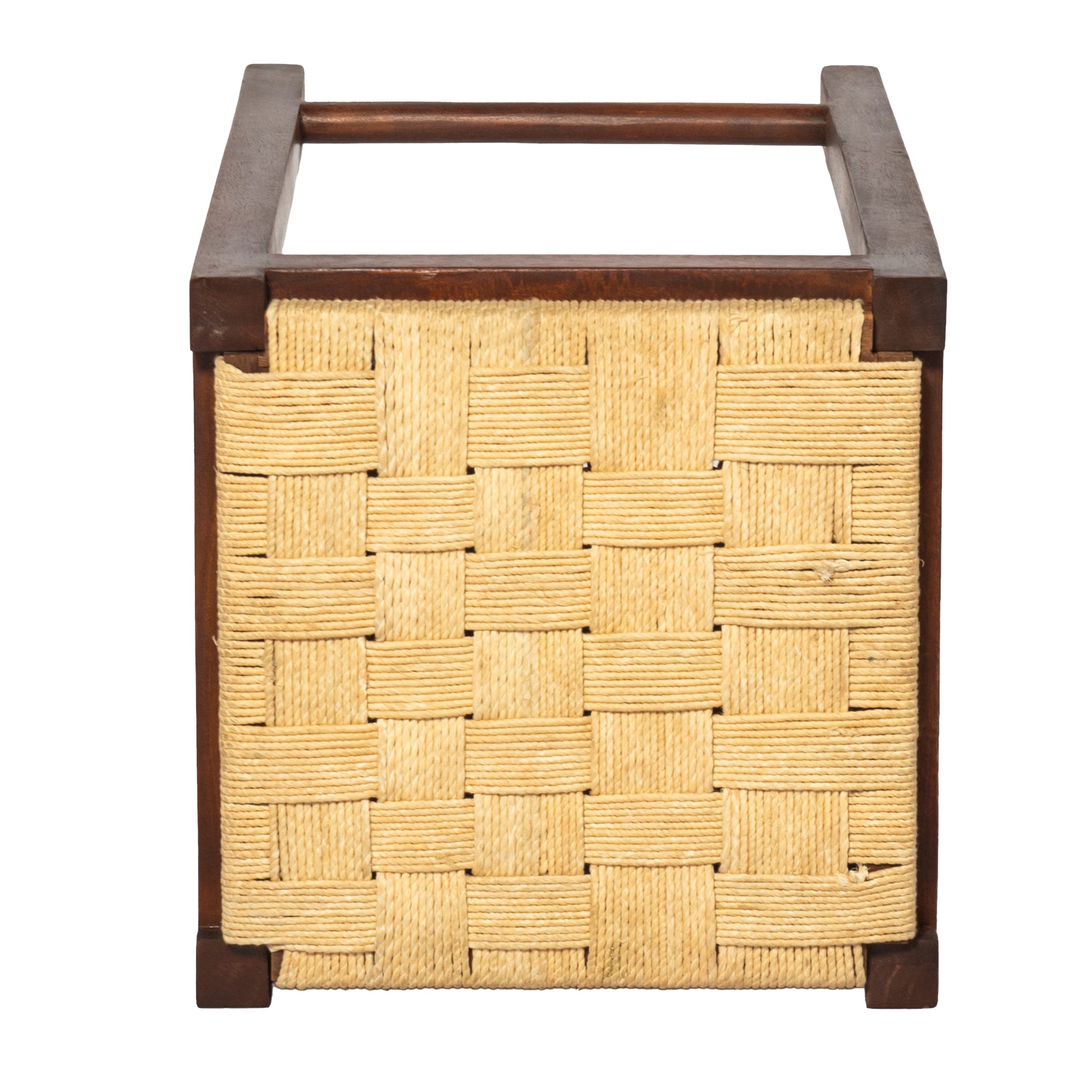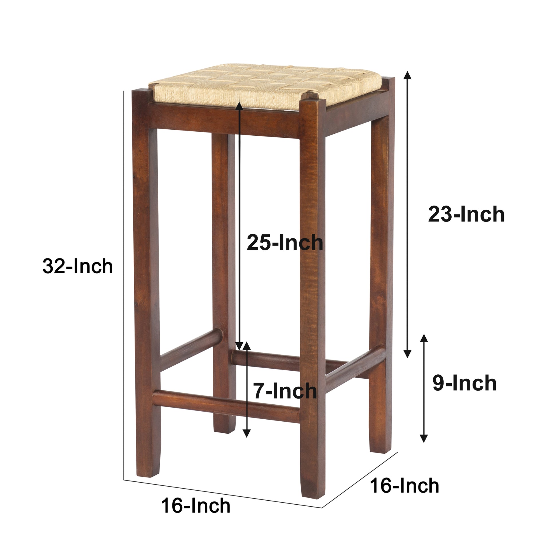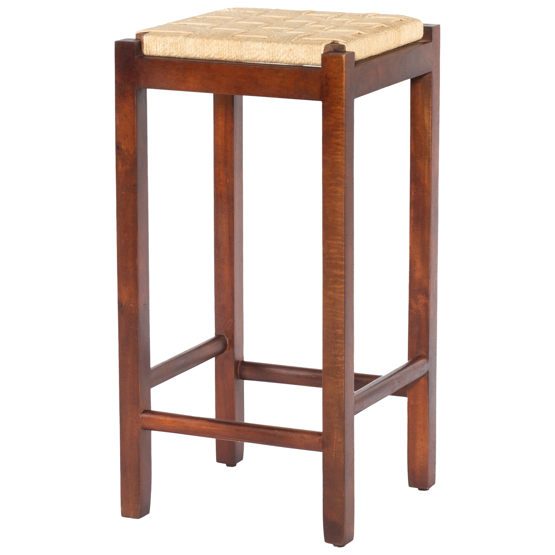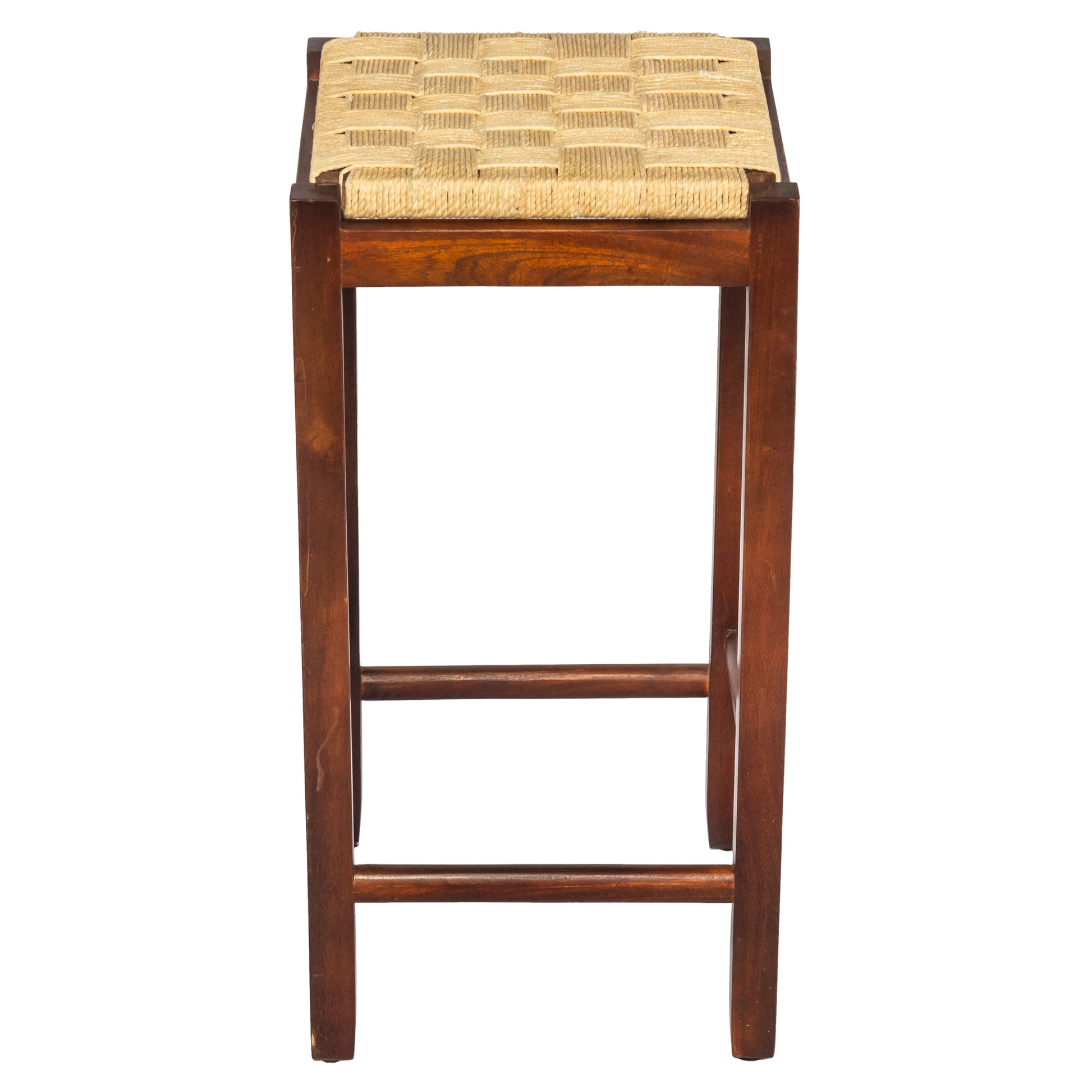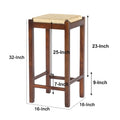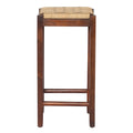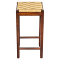 Mango Wood Barstool With Rope Weaved Seat, Brown Brown Solid Wood