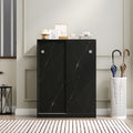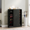 Marble Black Shoe Cabient With Sliding Door Have 6 Layers Can Storage At Least30 Pairs Shoes Black Particle Board