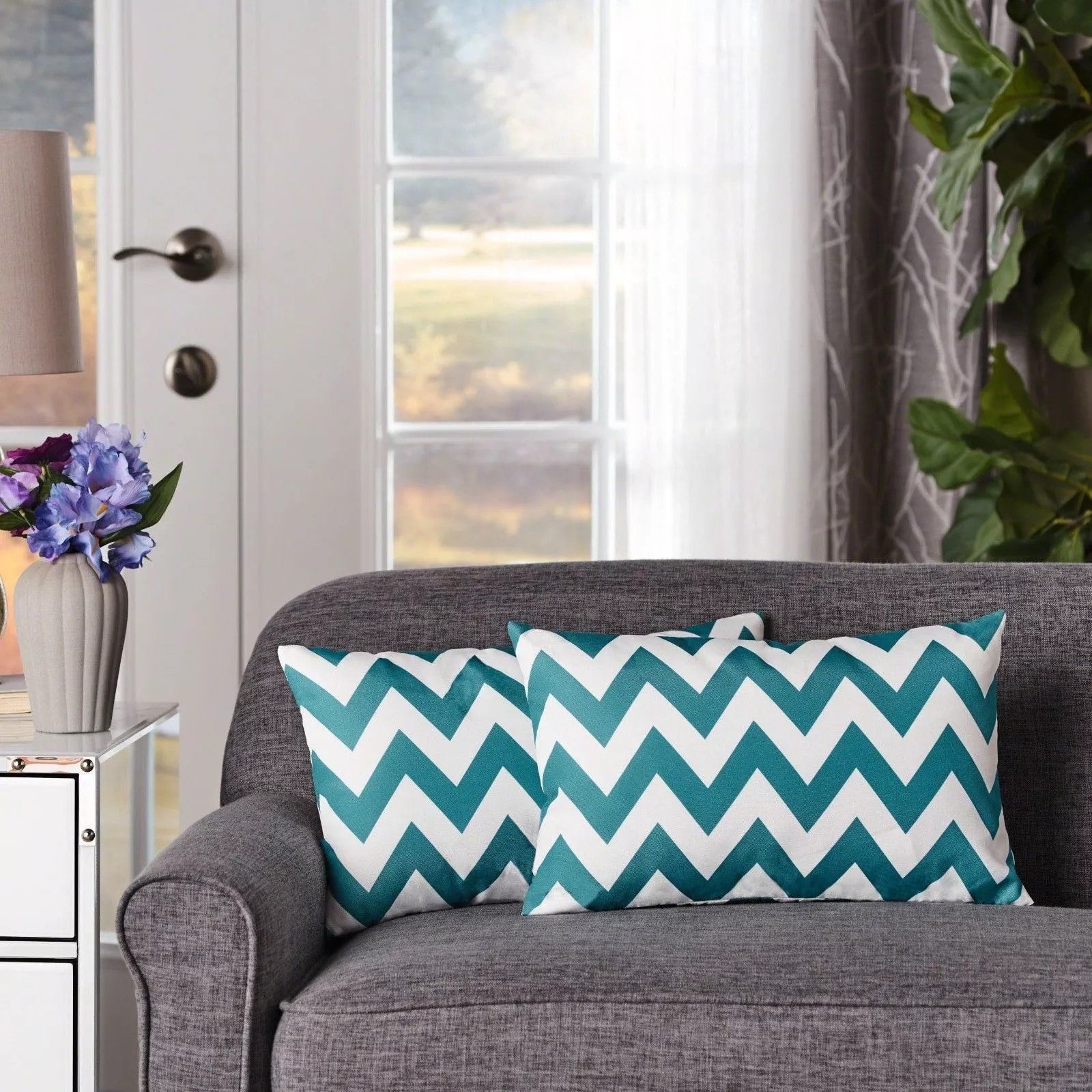 Marisol Chevron Rectangular Pillow Set Of 2 Teal Fabric