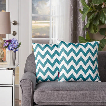 Marisol Chevron Square Pillow Teal Fabric
