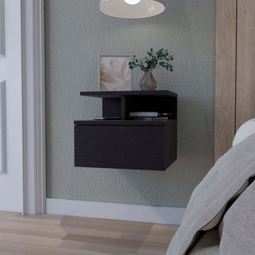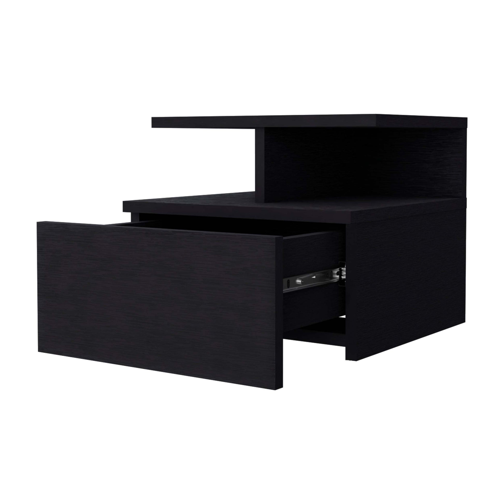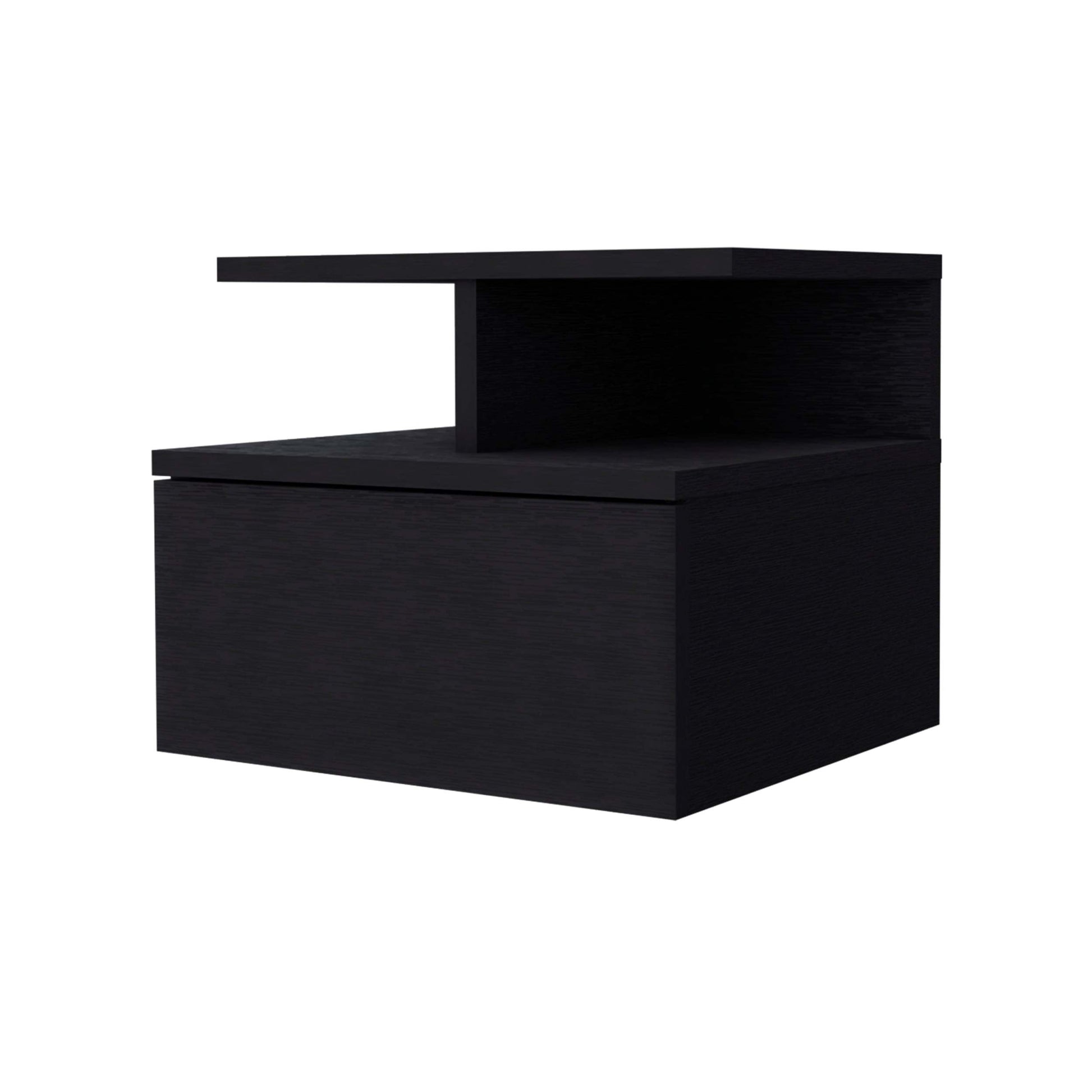 Mason Black 1 Drawer Floating Nightstand Black 1 Drawer Bedroom Floating Space Saving Black Wood