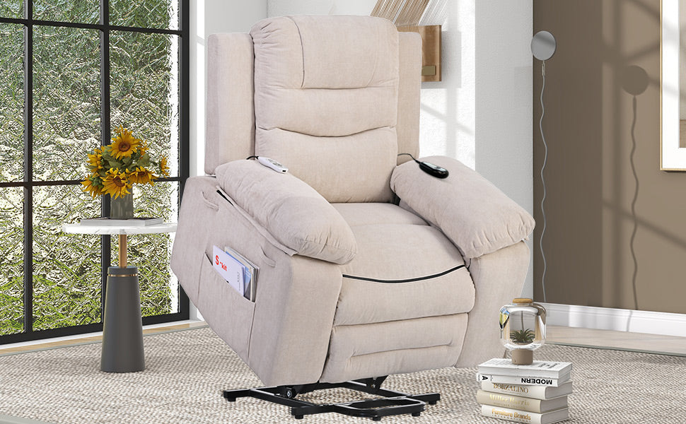 Massage Recliner,Power Lift Chair For Elderly With Adjustable Massage And Heating Function,Recliner Chair With Infinite Position And Side Pocket For Living Room ,Beige Beige Foam Linen