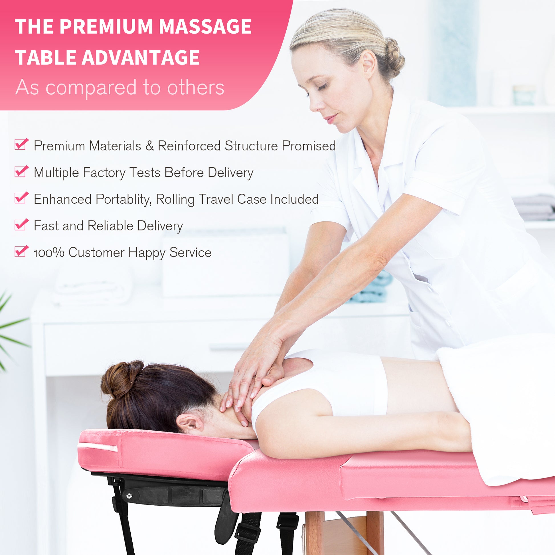 Massage Table Portable Massage Bed Lash Bed With Carrying Case Spa Table Height Adjustable, Salon Bed Face Cradle Bed Pink Faux Leather