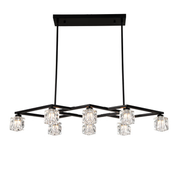 Matte Black Crystal Chandelier For Dining Room, 8 Light Kitchen Chandelier Light Fixture Modern Metal Industrial Chandeliers For Farmhouse Entryway Living Room 8*G9 Bulbs Included Matte Black