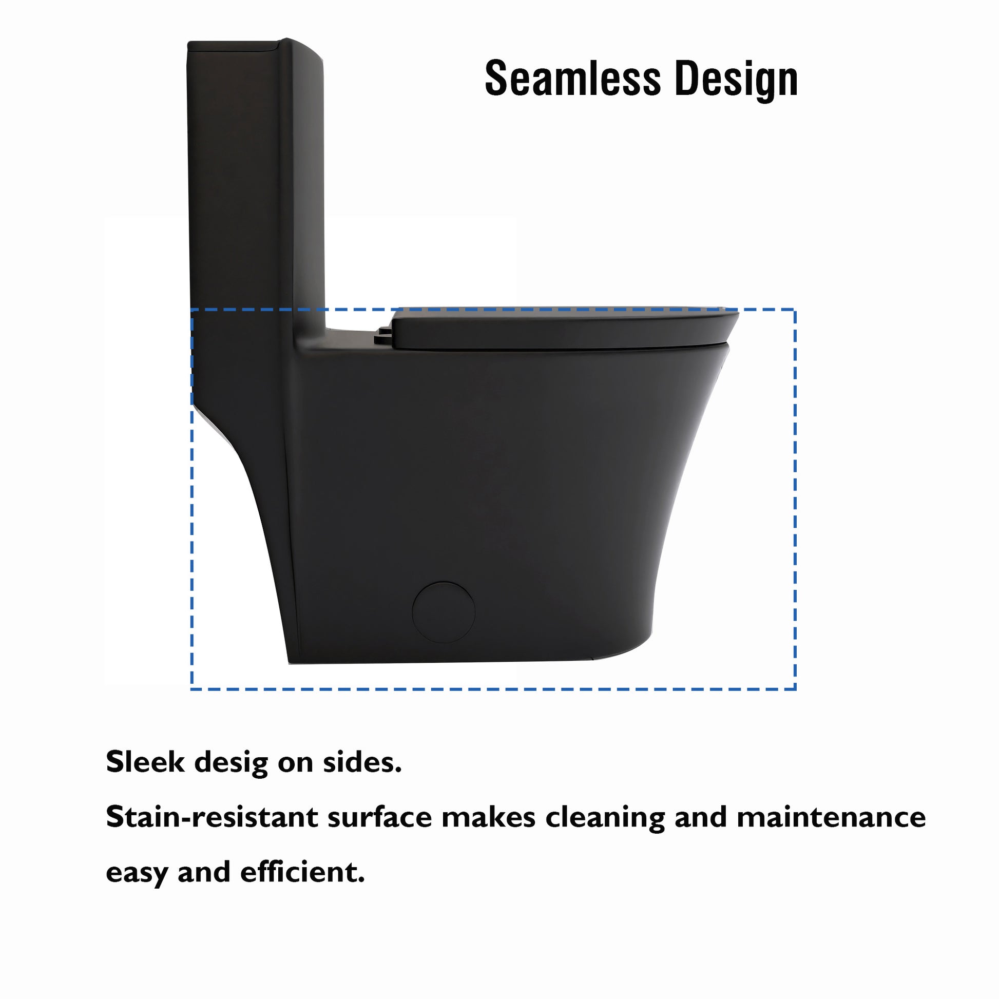 Matte Black Elongated One Piece Toilet Dual Flush 1.1 1.6 Gpf Water Saving Map 1000G,Matte Black Matte Black Bathroom Modern Porcelain