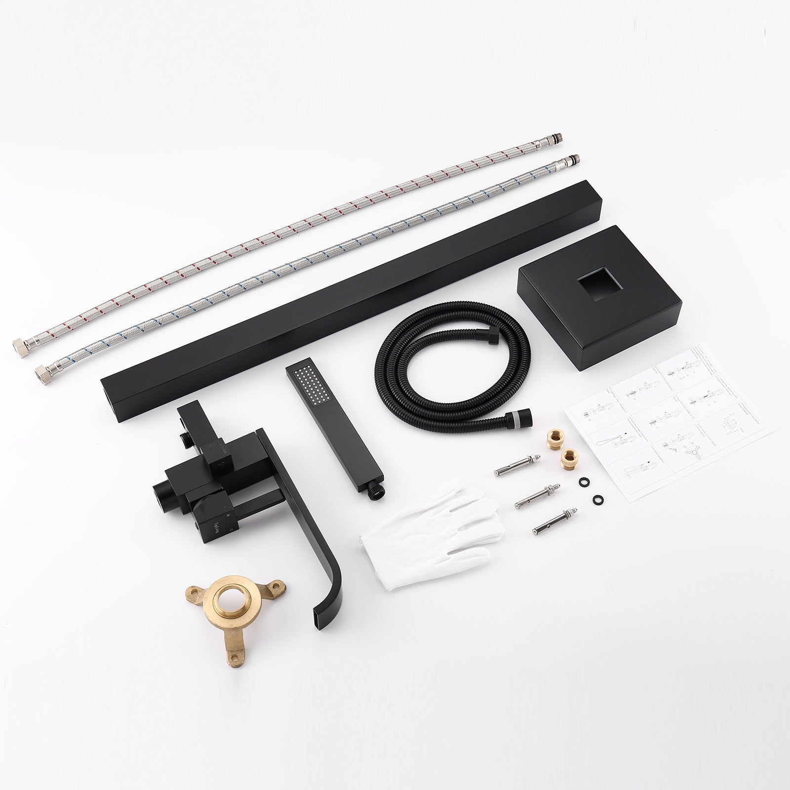 Matte Black Freestanding Bathtub Faucet Waterfall Tub Filler With Handheld Shower Matte Black Brass