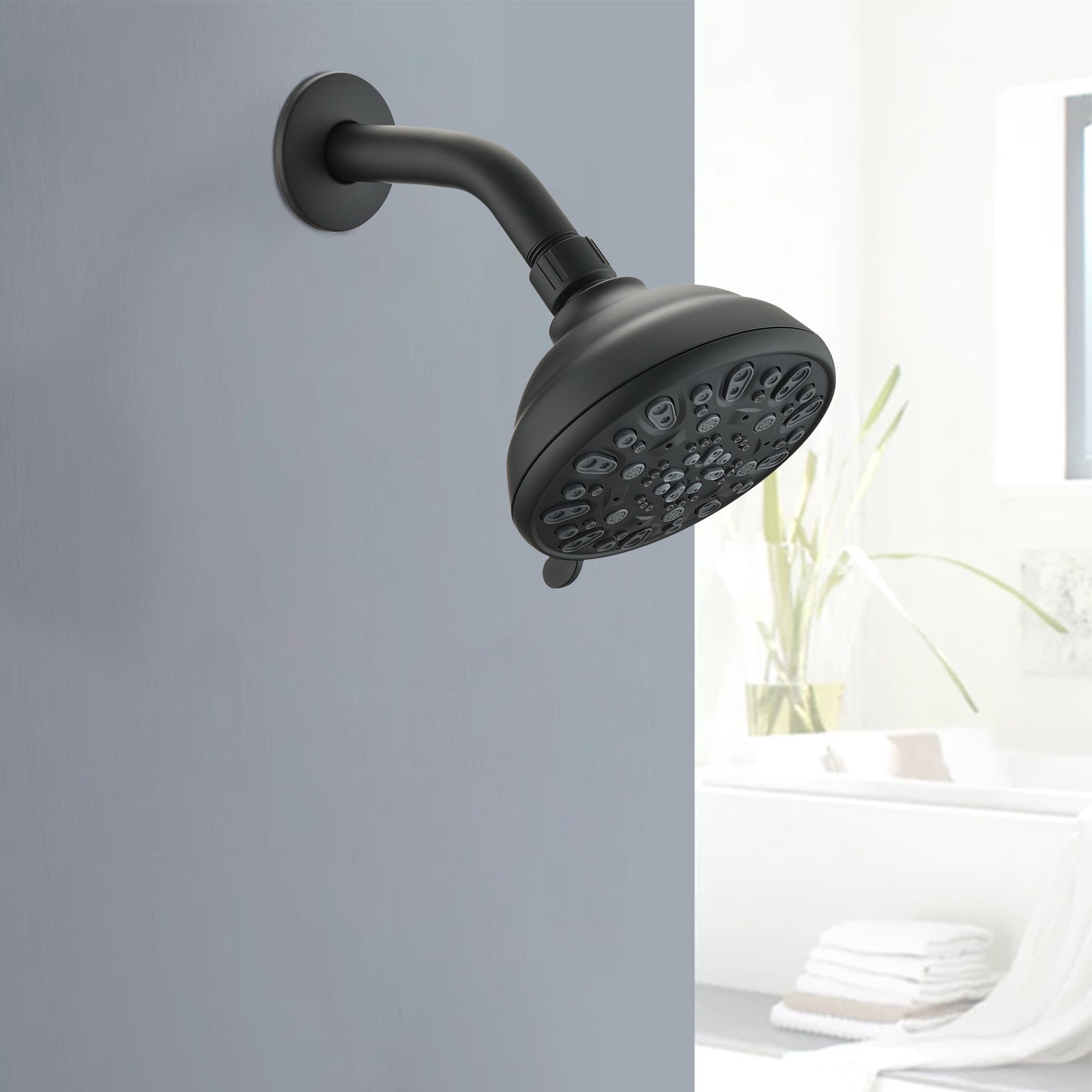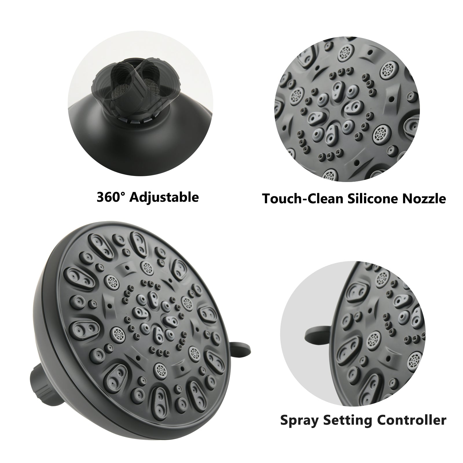 Matte Black High Pressure 6 Setting 4" Shower Head Angle Adjustable, Clog Proof Shower Head Matte Black Abs