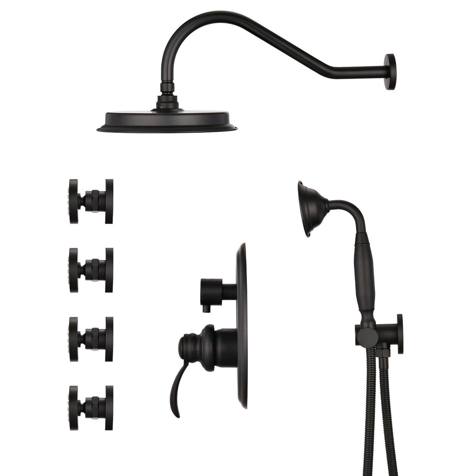 Matte Black Shower System With Handheld And 4 Body Sprays Matte Black Brass