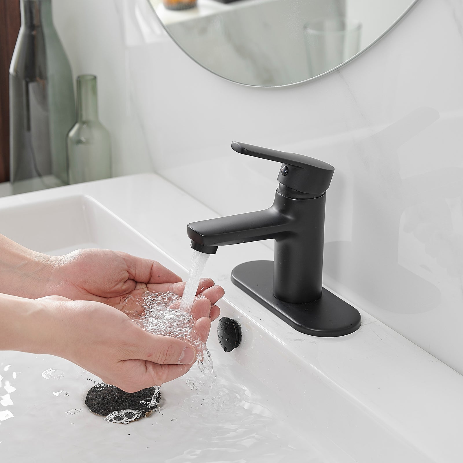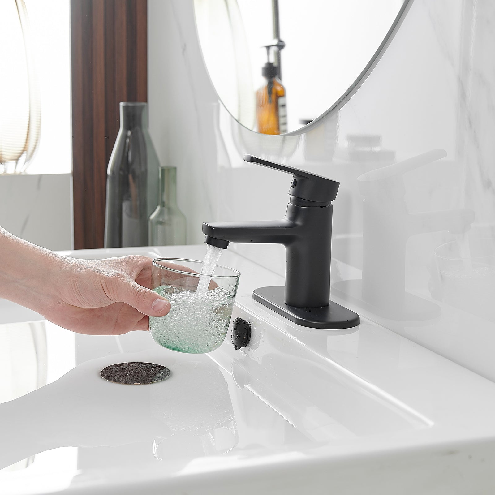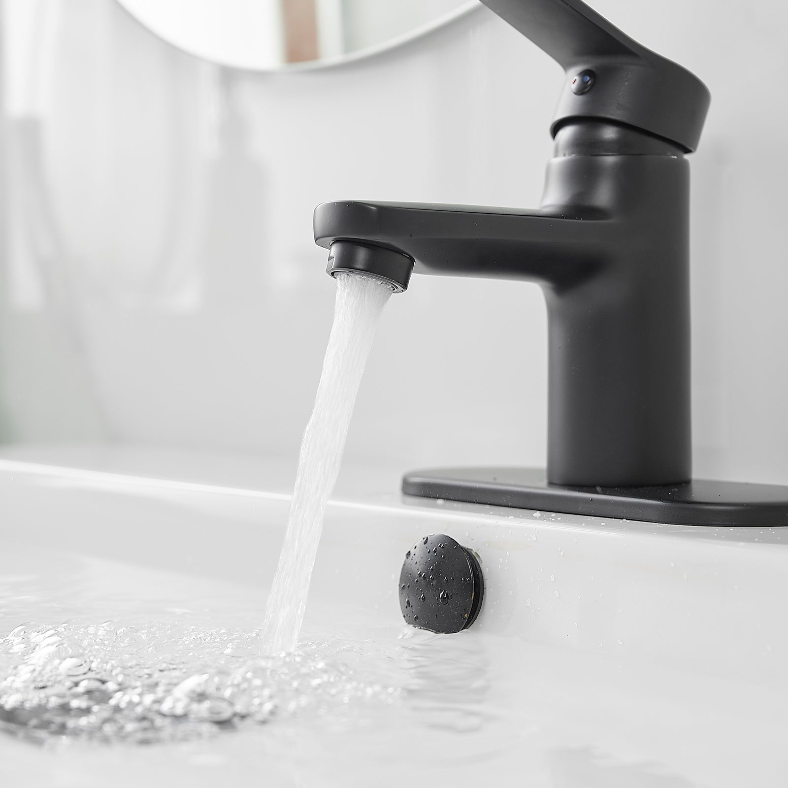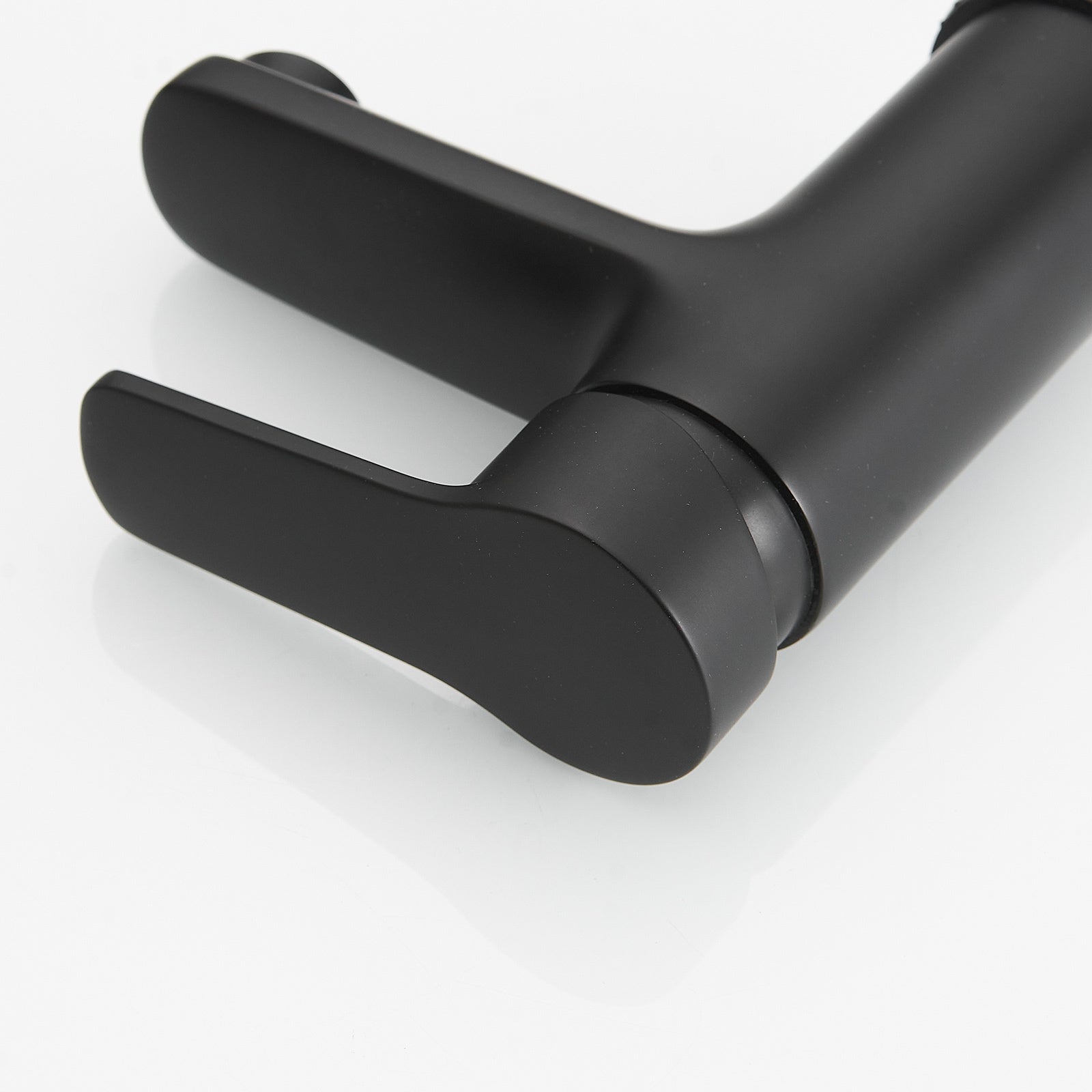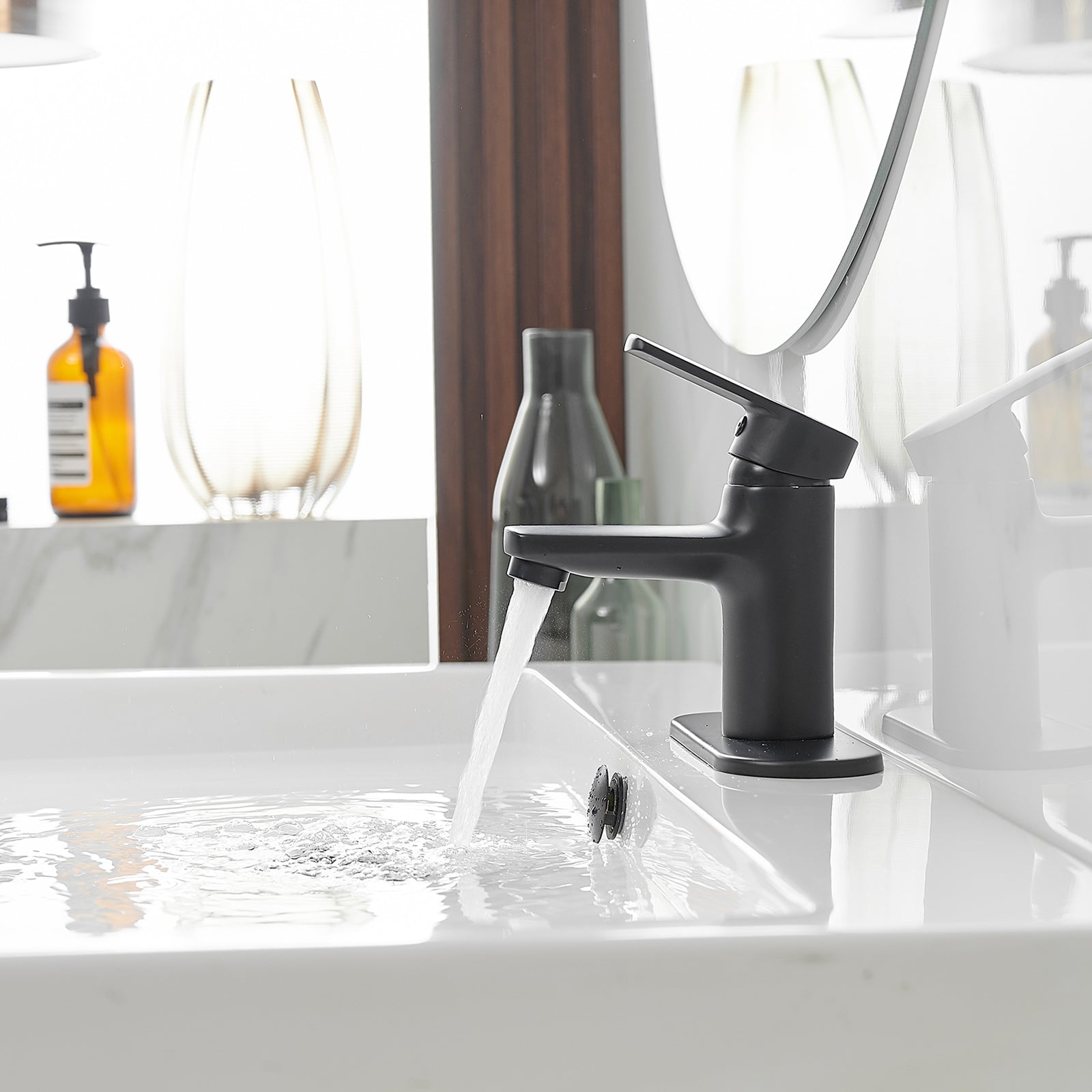 Matte Black Single Handle Low Arc Bathroom Faucet Matte Black Brass