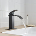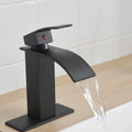 Matte Black Waterfall Single Handle Low Arc Bathroom Faucet With Drain Matte Black Brass