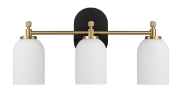 Meadows Three Lights Vanity Brushed Gold Bathroom Wall Light For Bathroom Over Mirror 20.5"W 10.125"H 5.5"E With White Frosted Glass Black,Gold,White Glass,Metal