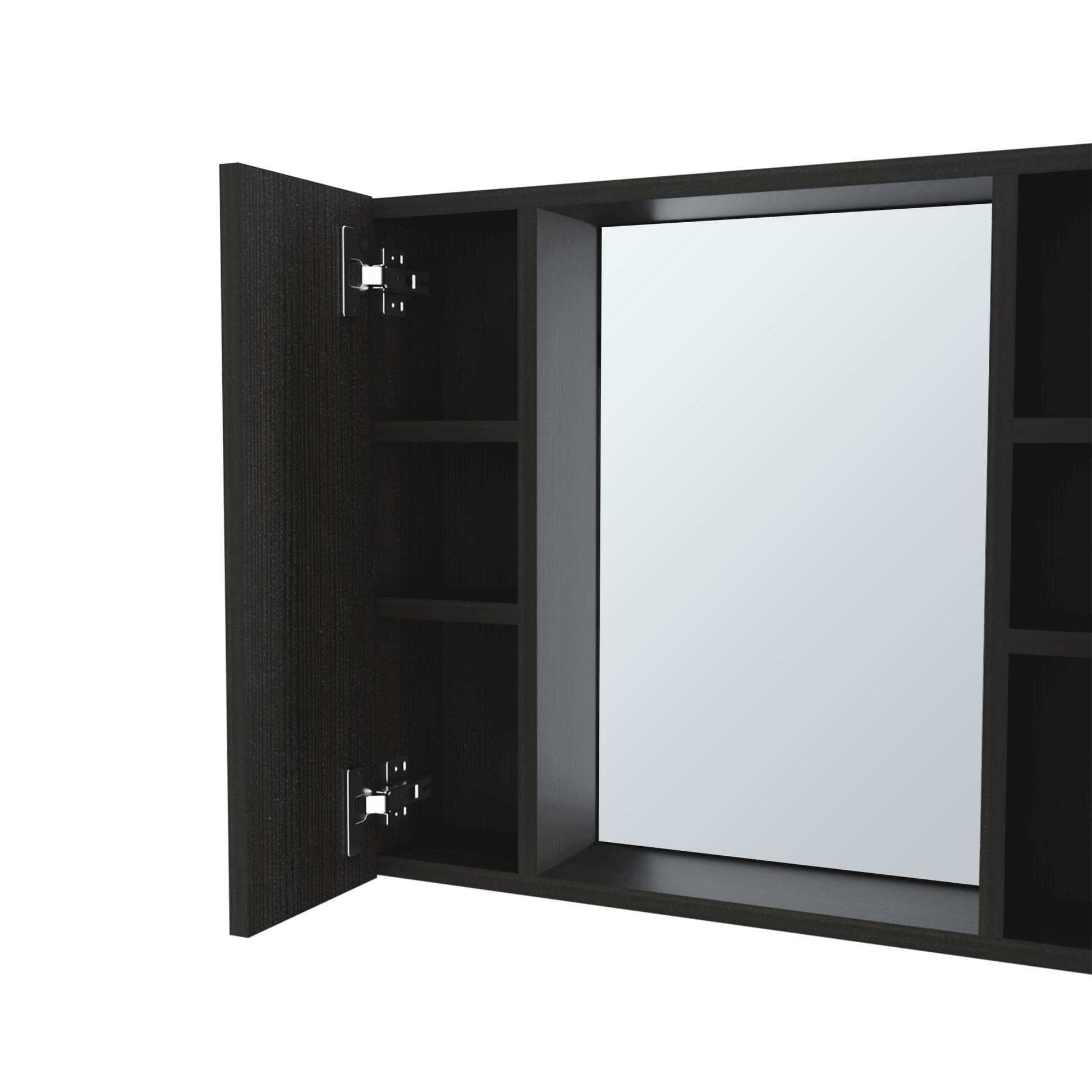 Medicine 19H" Double Door Cabinet, One External Shelf, Black Black Particle Board Particle Board