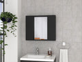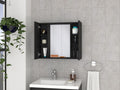 Medicine Cabinet Hops, Double Door, Mirror, One External Shelf, Black Wengue Finish Black Particle Board