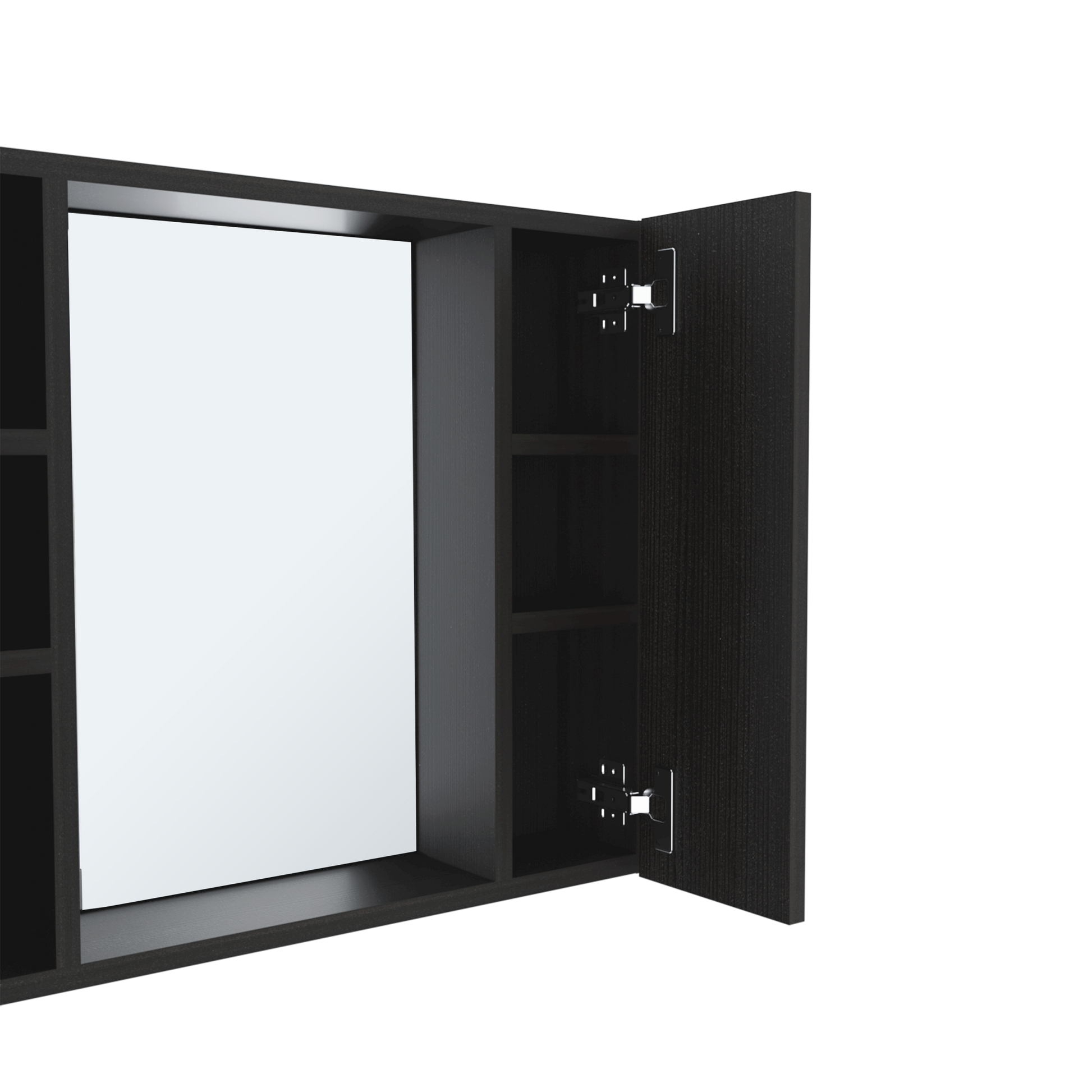 Medicine Double Door Cabinet 19" H, One External Shelf, Black Black Particle Board Particle Board