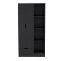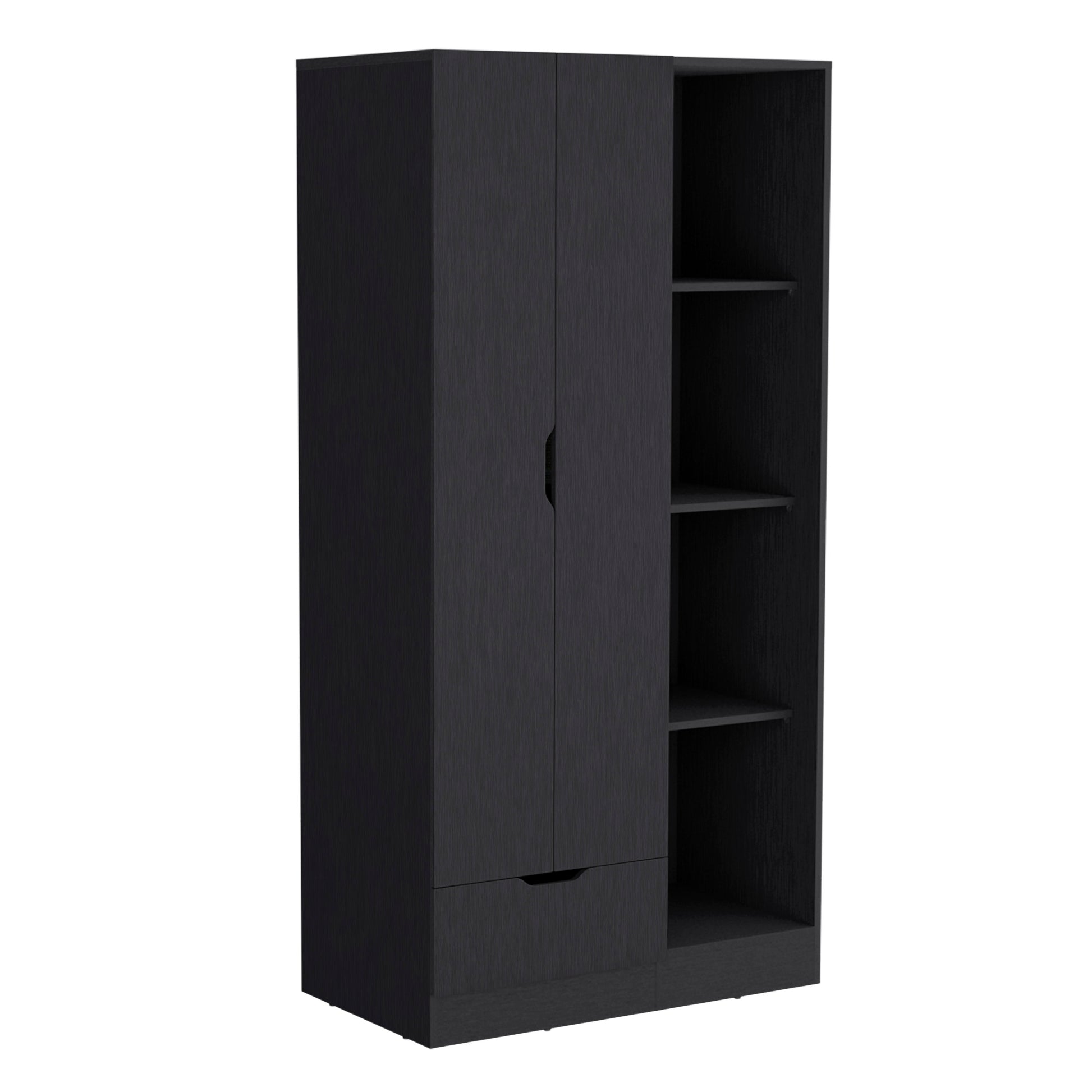 Memphis Wardrobe Armoire With 4 Tier Storage Shelves And 1 Drawer Black Black Bedroom Particle Board