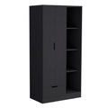 Memphis Wardrobe Armoire With 4 Tier Storage Shelves And 1 Drawer Black Black Particle Board