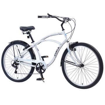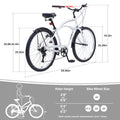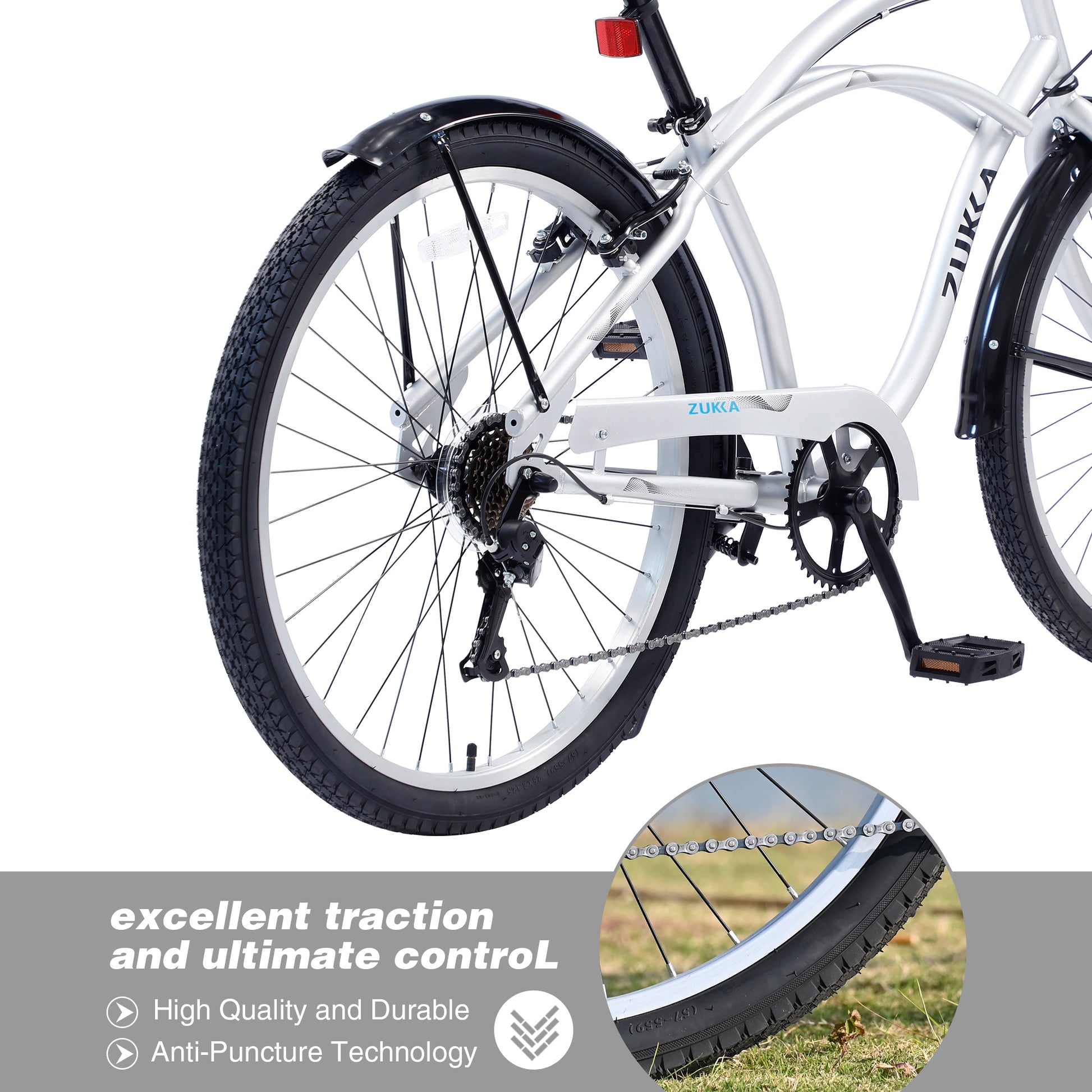 Men'S Beach Cruiser Bike, 7 Speed Bicycles, 26"Inch Multiple Colors Cycling Silver Beach Steel