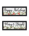 "Merry & Bright Holiday Happy Holidays To You" Framed Wall Art For Living Room, Wall Art Print For Home Decor, Bedroom Wall Art By Cindy Jacobs Multicolor Wood Paper
