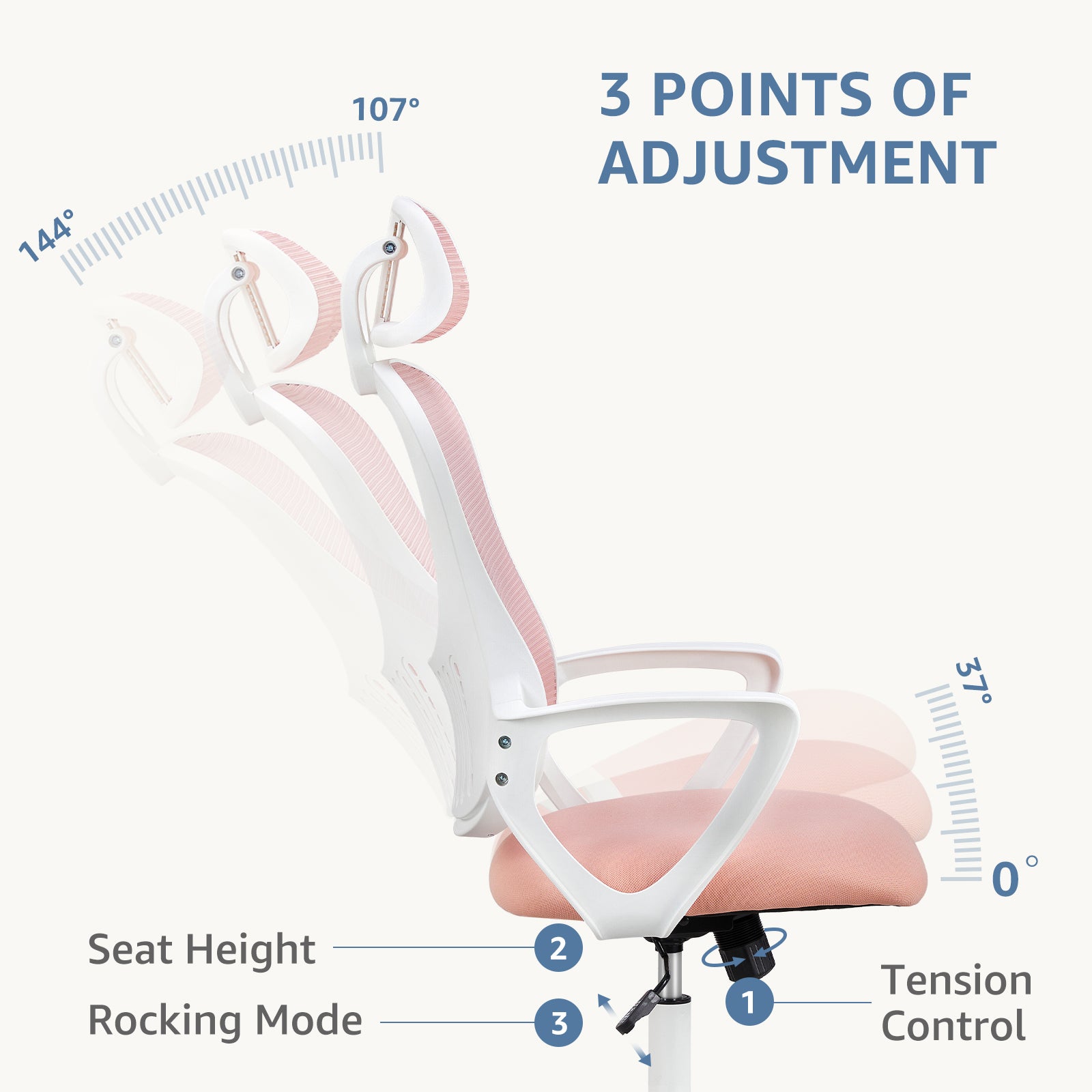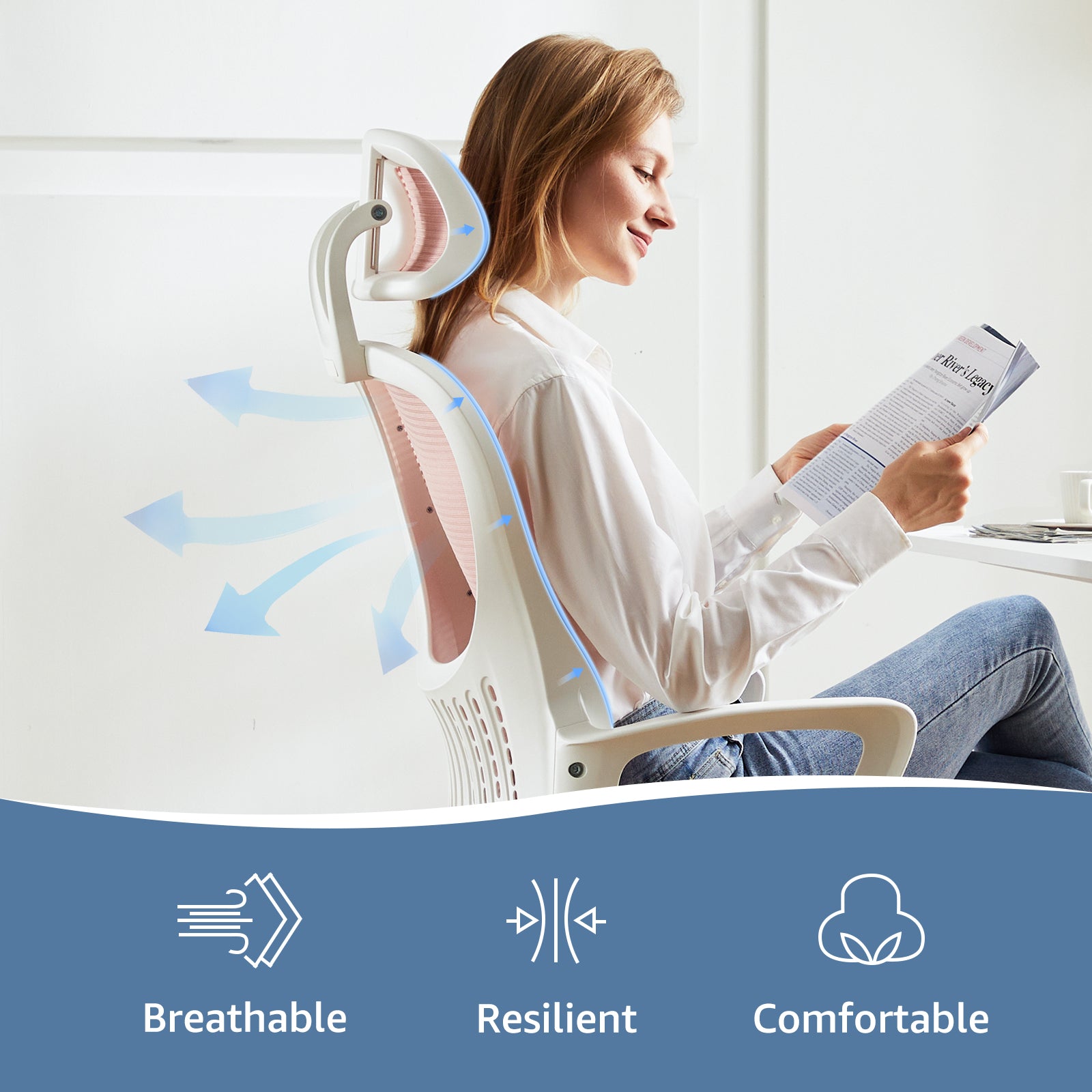 Mesh Rolling Work Chairs With Wheels And Adjustable Headrests, Comfortable Lumbar Support, Comfy Armrest For Home, Bedroom, Study,Pink Pink Abs